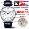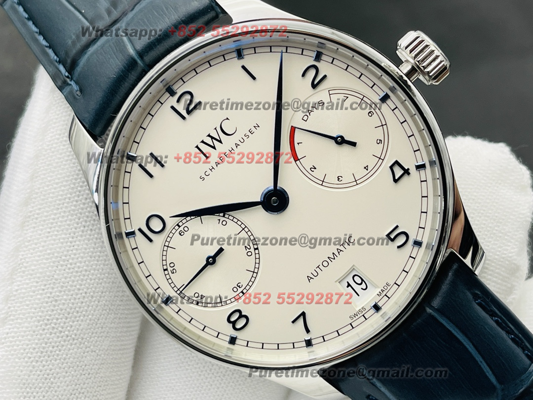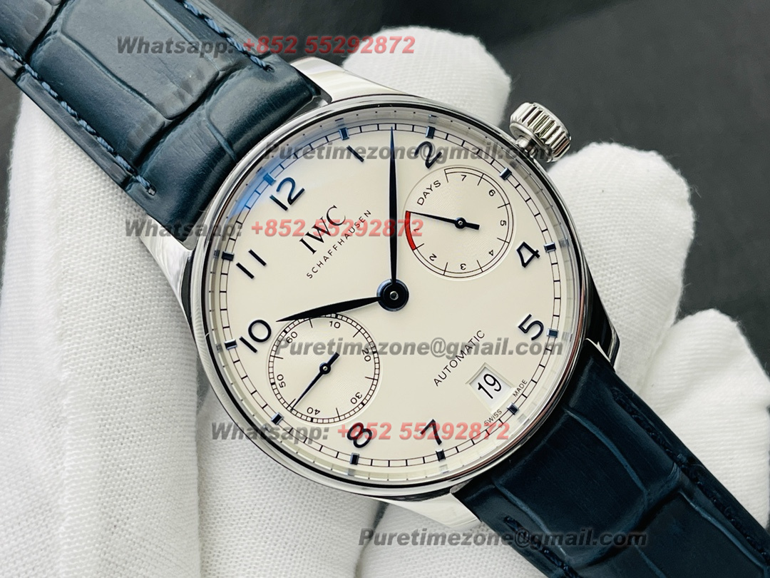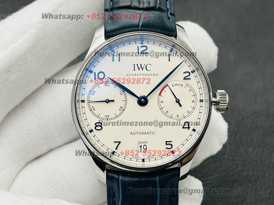 Portugieser Automatic IW500705 Mens Watch Super Clone ZF V5 42mm White Dial Blue Leather Strap A52010