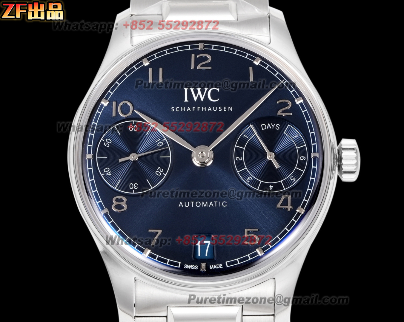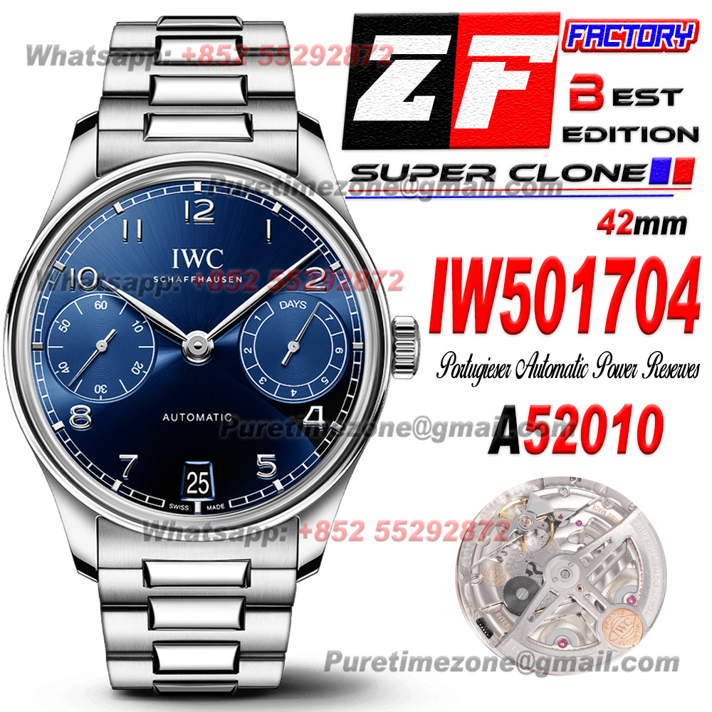 Portugieser Automatic IW501704 Mens Watch Super Clone ZF 42mm RG Blue Dial SS Bracelet A52010