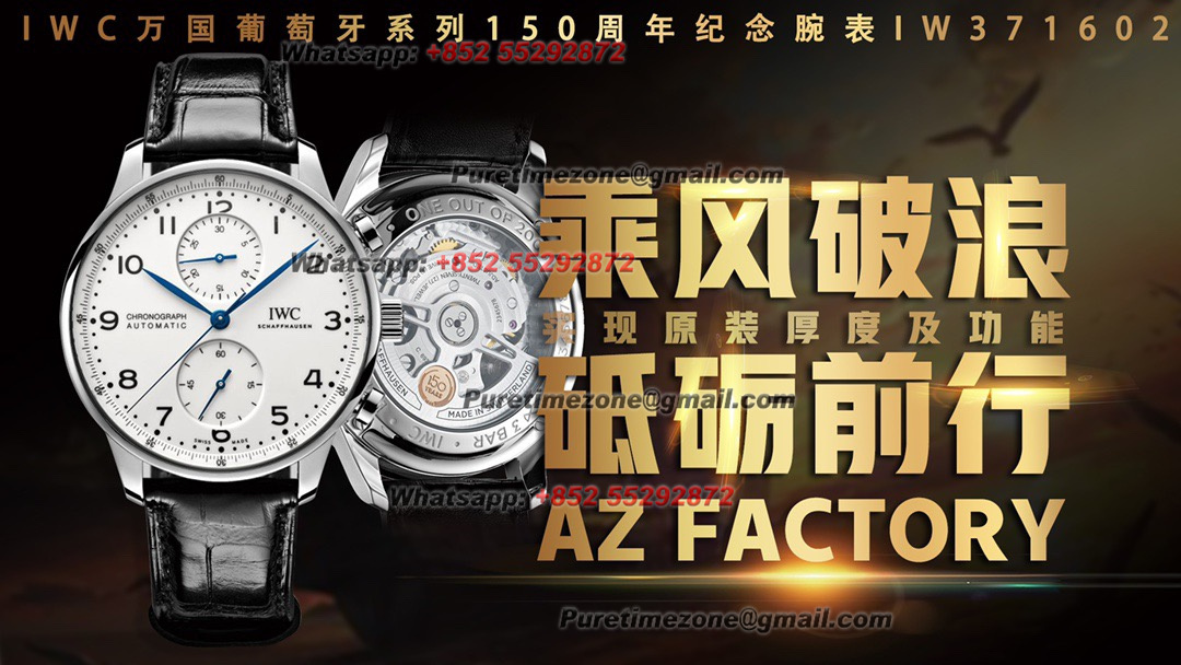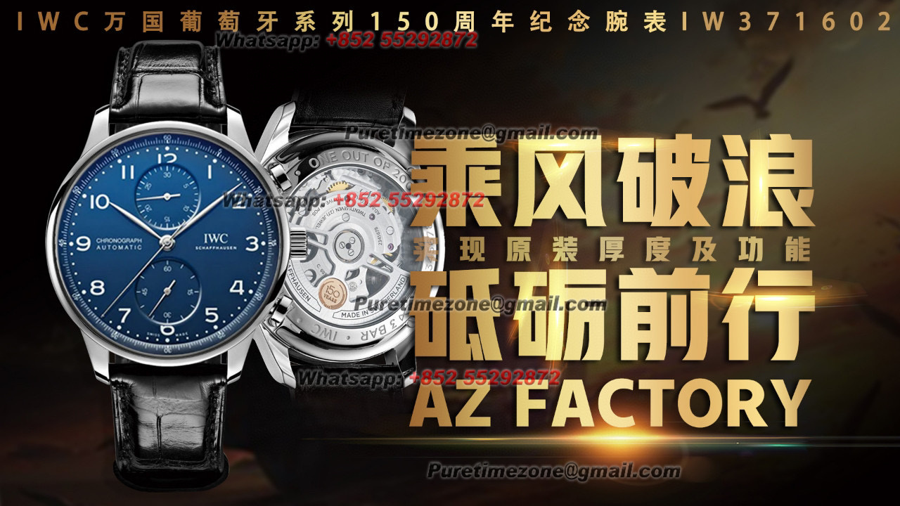 Portugieser Chronograph Edition “150 Years” IW371601 Automatic Mens Watch Super Clone AZF Blue Dial Black Leather Strap A7750 (Slim Movement) $680.00 $520.00