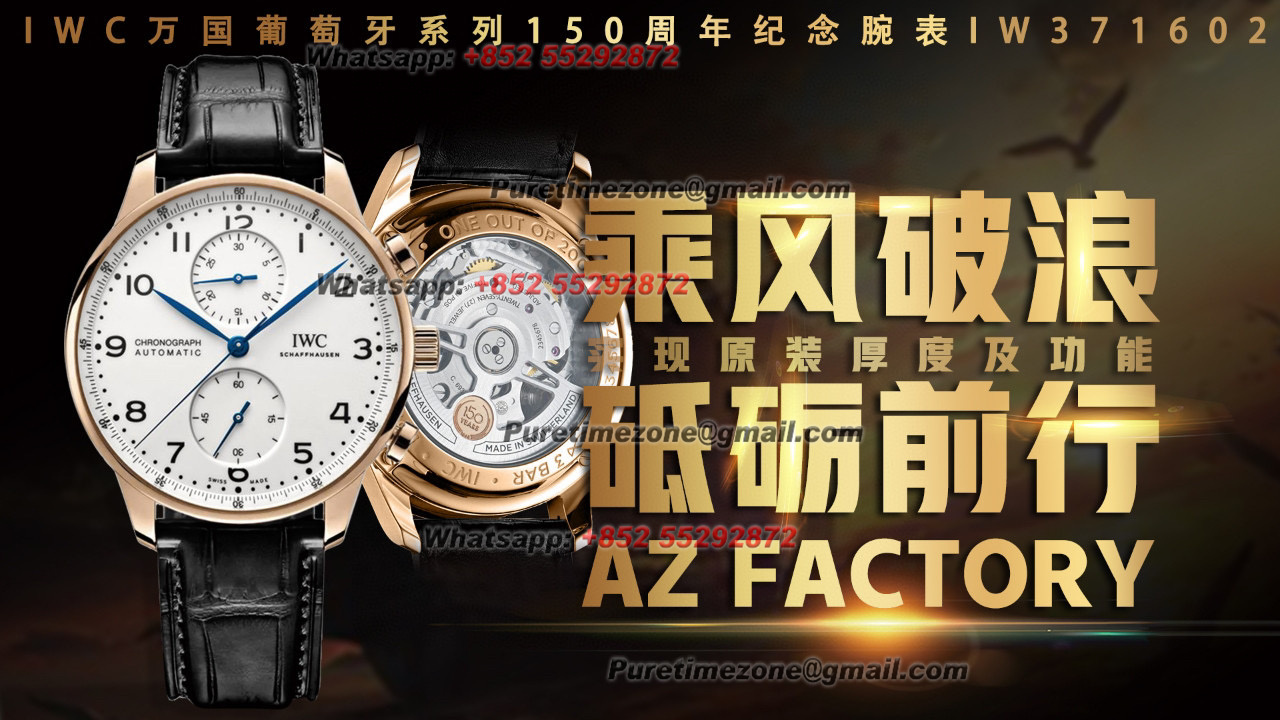 Portugieser Chronograph Edition “150 Years” IW371602 Automatic Mens Watch Super Clone AZF White Dial Black Leather Strap A7750 (Slim Movement)