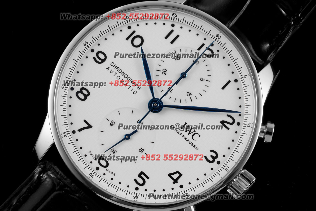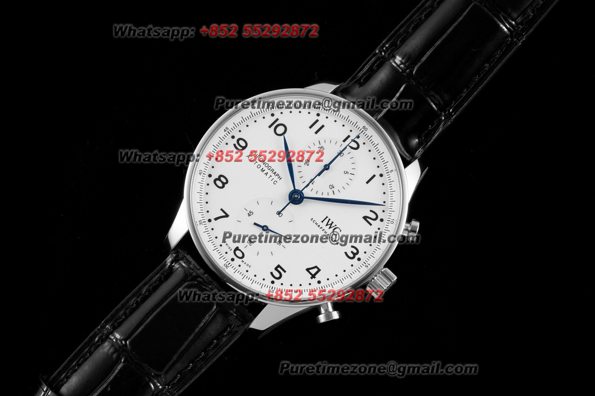 Home IWC Portugieser Portugieser Chronograph Edition “150 Years” IW371602 Automatic Mens Watch Super Clone AZF White Dial Black Leather Strap A7750 (Slim Movement)