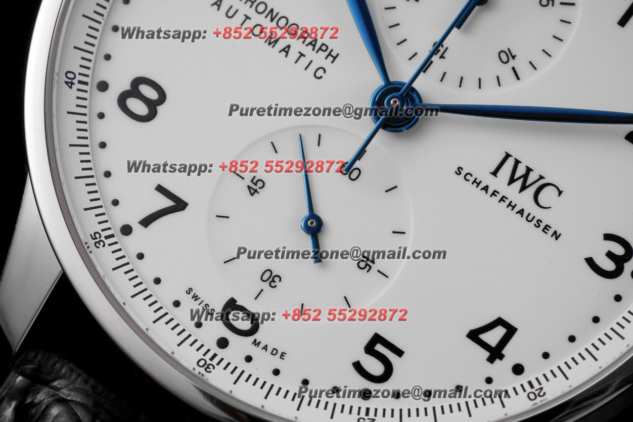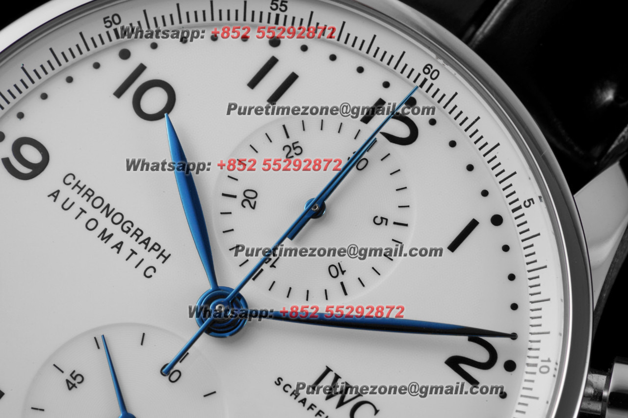 Portugieser Chronograph Edition “150 Years” IW371602 Automatic Mens Watch Super Clone AZF White Dial Black Leather Strap A7750 (Slim Movement)