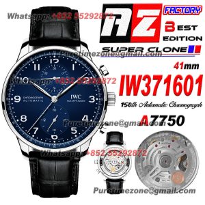 Portugieser Chronograph Edition “150 Years” IW371601 Automatic Mens Watch Super Clone AZF Blue Dial Black Leather Strap A7750 (Slim Movement) $680.00 $520.00