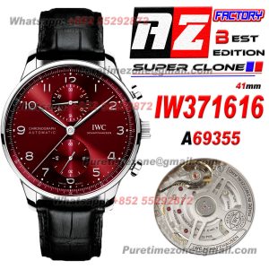 Portugieser Chronograph IW371616 Automatic Mens Watch Super Clone AZF Red Dial Black Leather Strap A69355 $650.00 $500.00