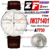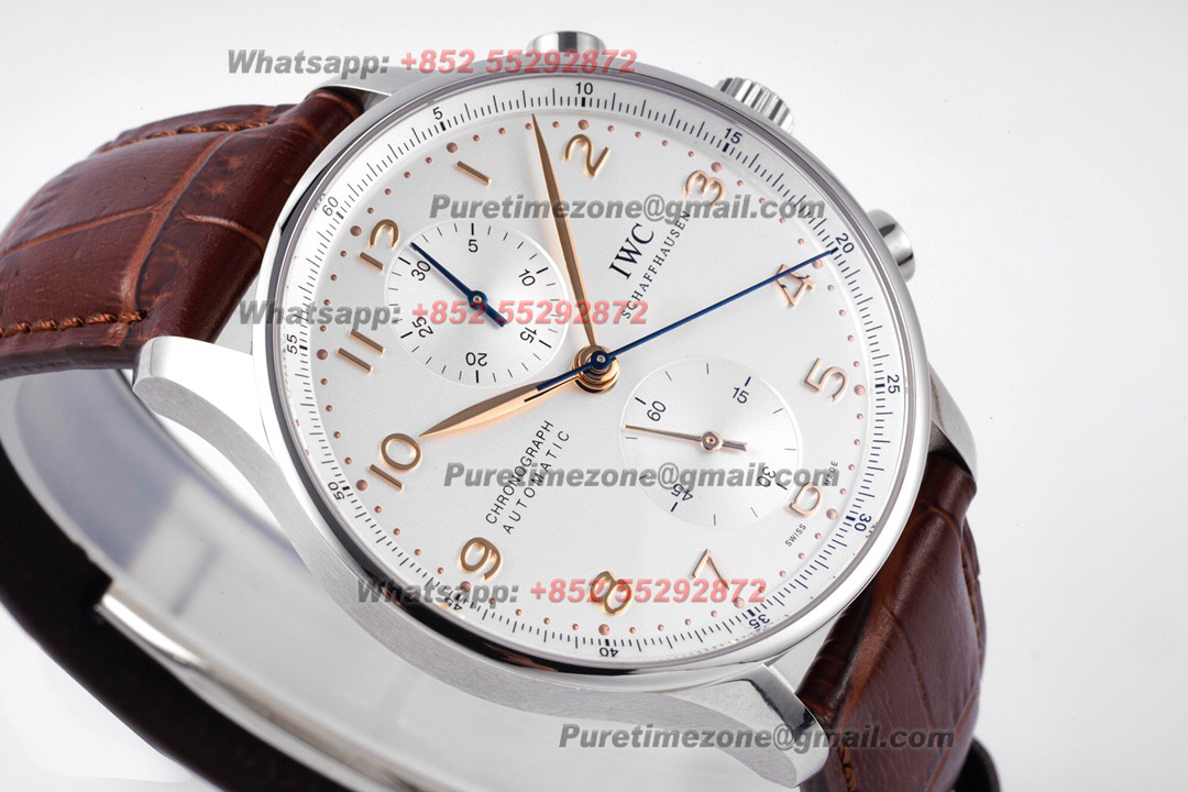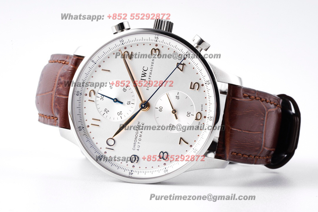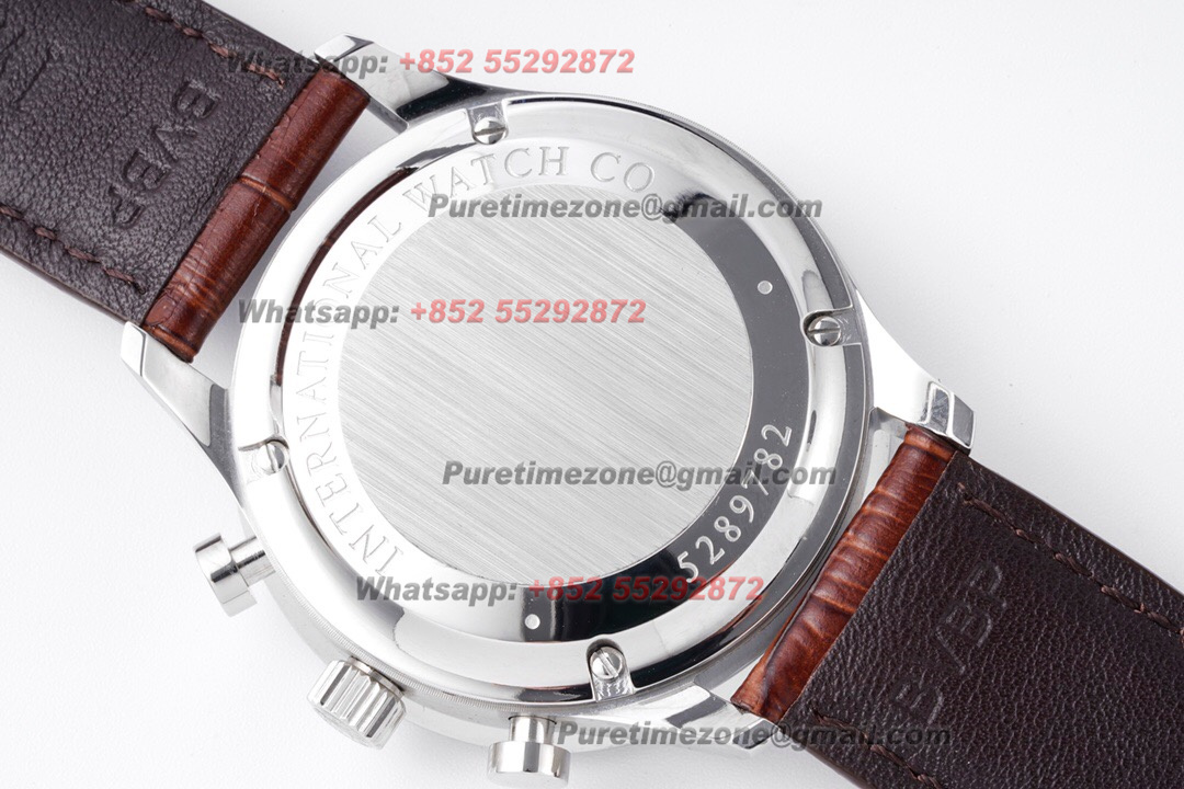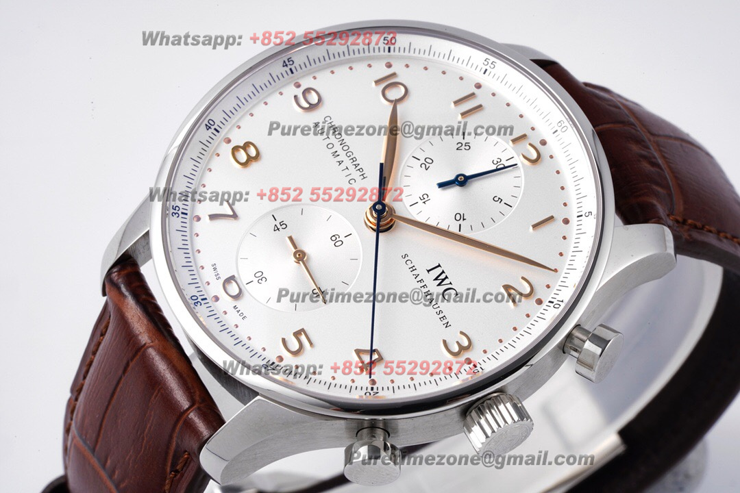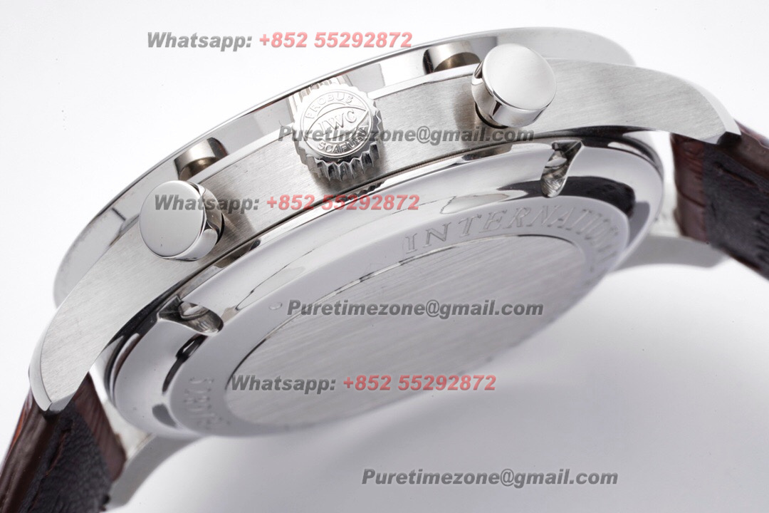 Portugieser Chronograph IW371401 Automatic Mens Watch Super Clone ZF 41 White Dial Brown Leather Strap A7750