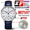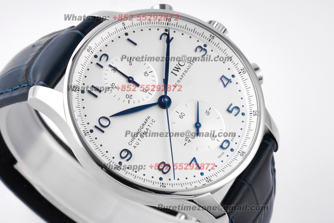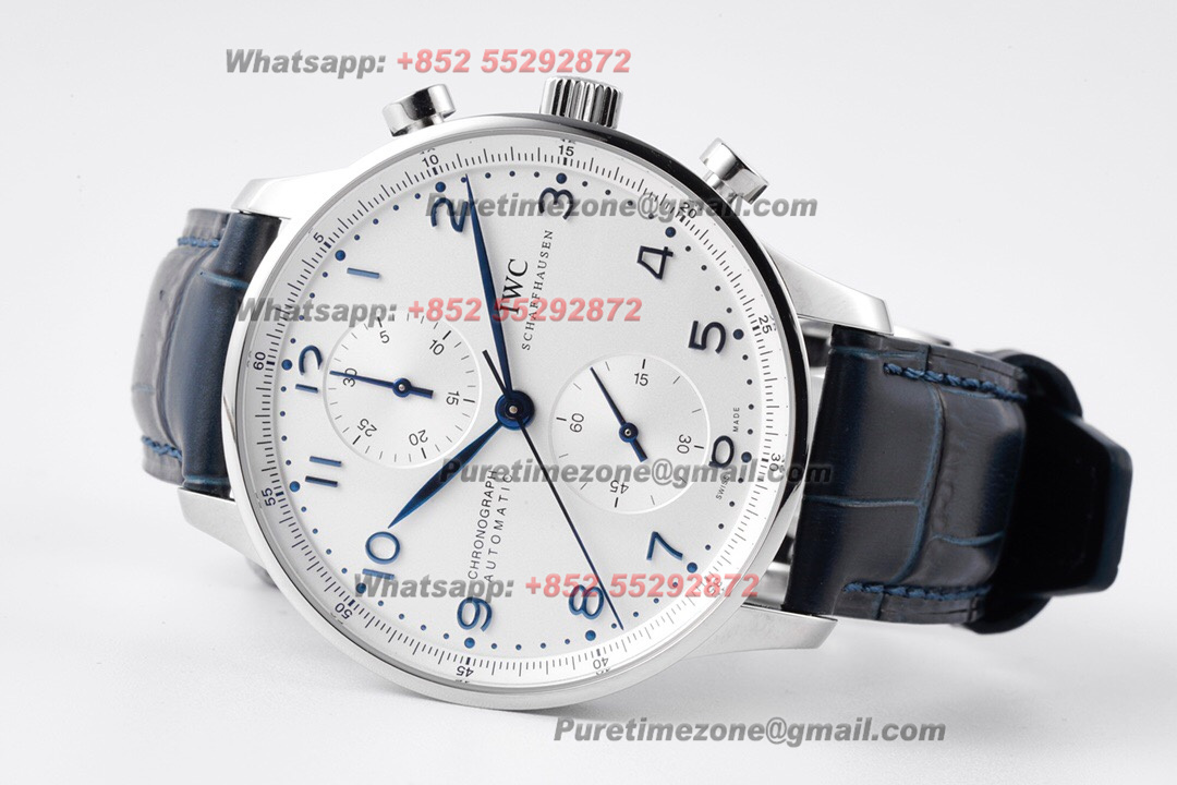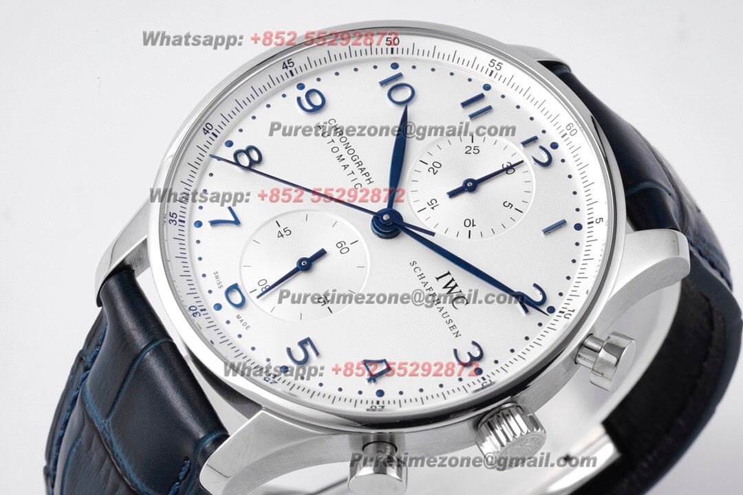 Portugieser Chronograph IW371417 Automatic Mens Watch Super Clone ZF 41 Silver Dial Blue Leather Strap A7750