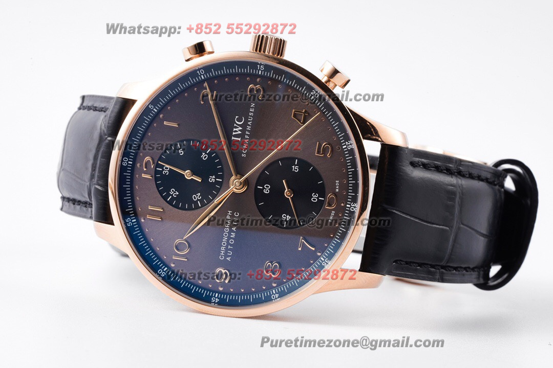 Portugieser Chronograph IW371482 Automatic Mens Watch Super Clone ZF 41 RG Gray Dial Black Leather Strap A7750