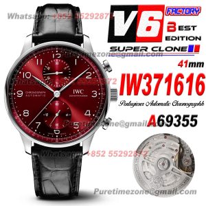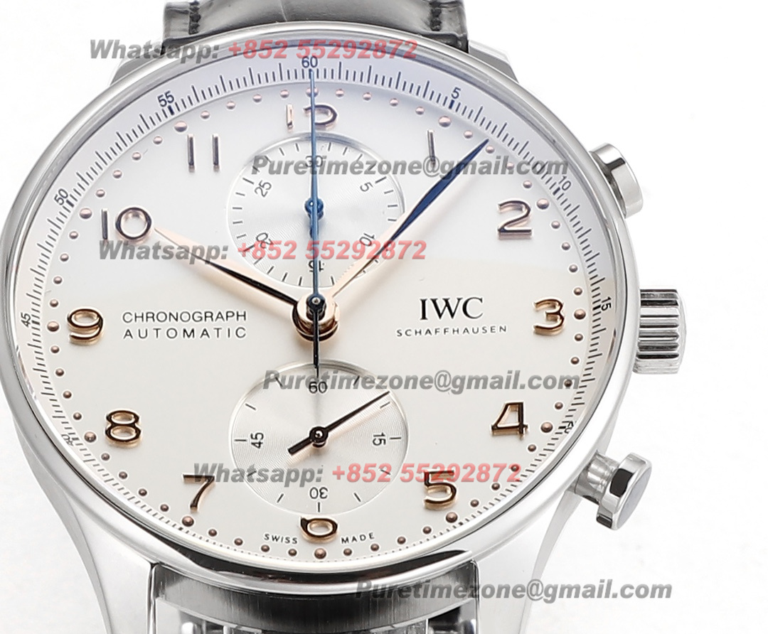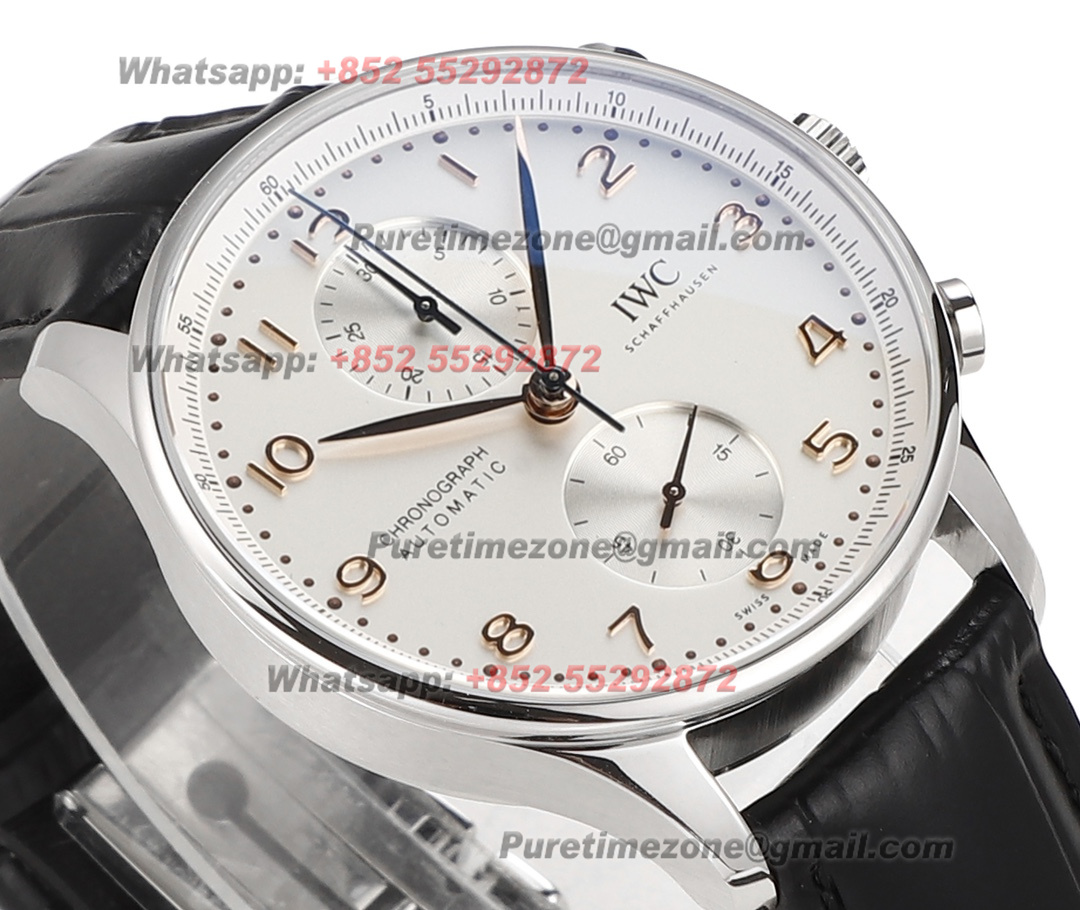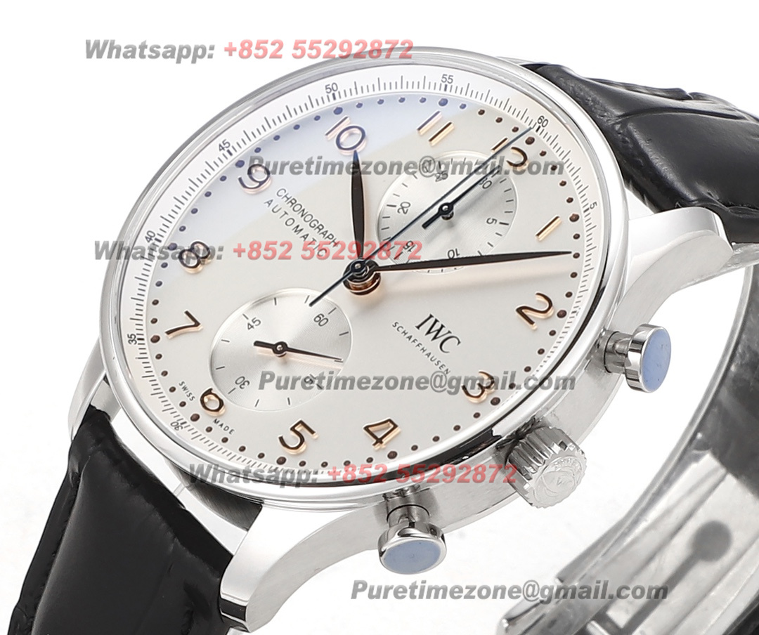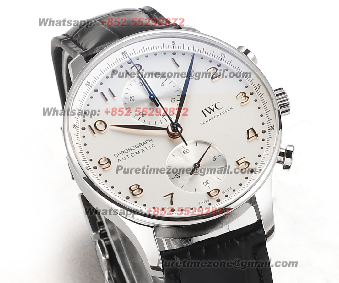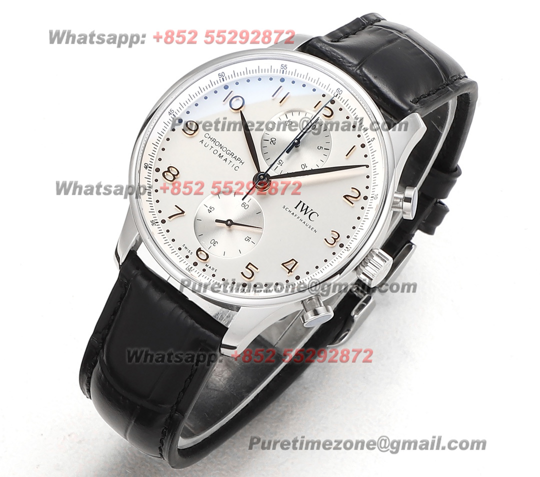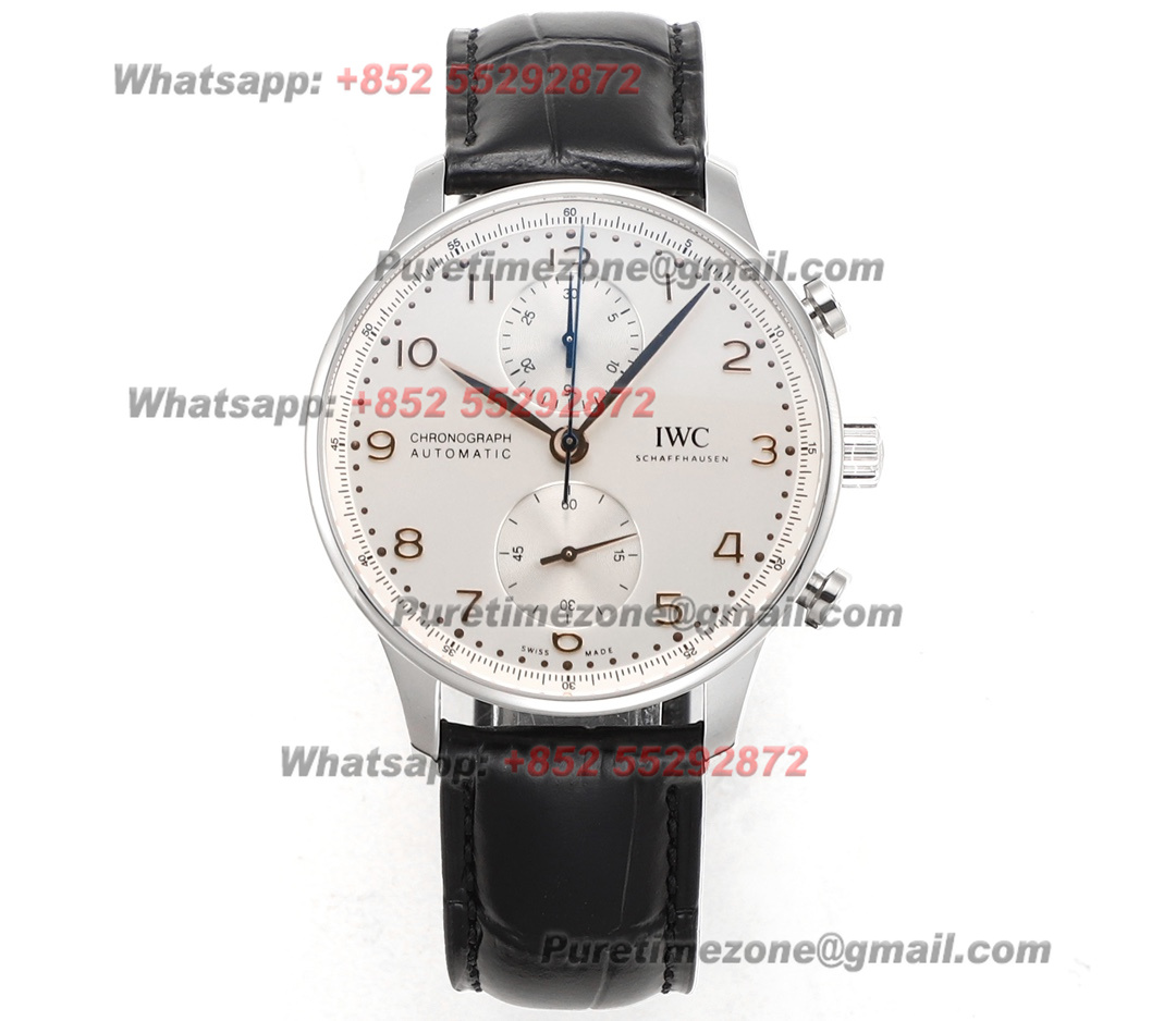 Portugieser Chronograph IW371604 Automatic Mens Watch Super Clone V6SF 41 Silver Dial Black Leather Strap A69355