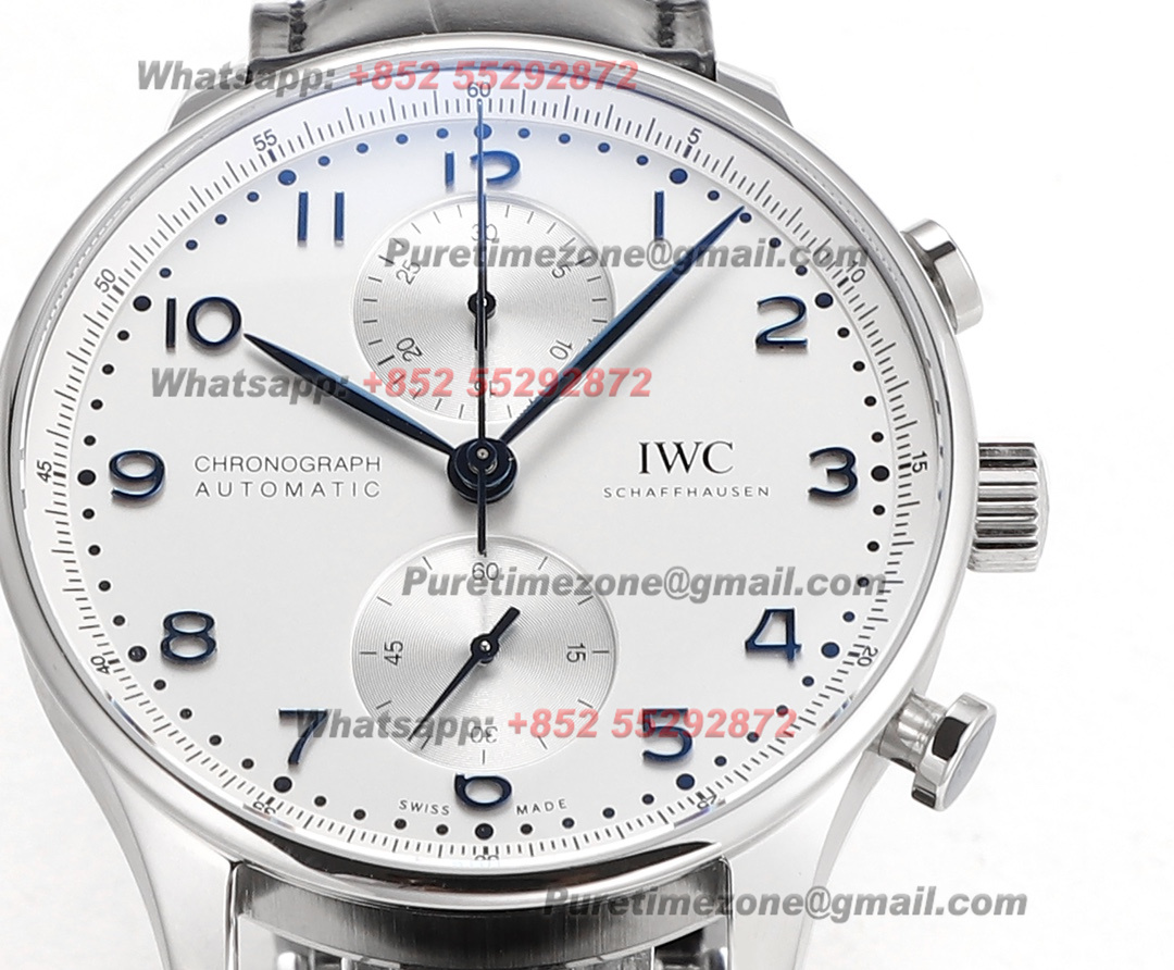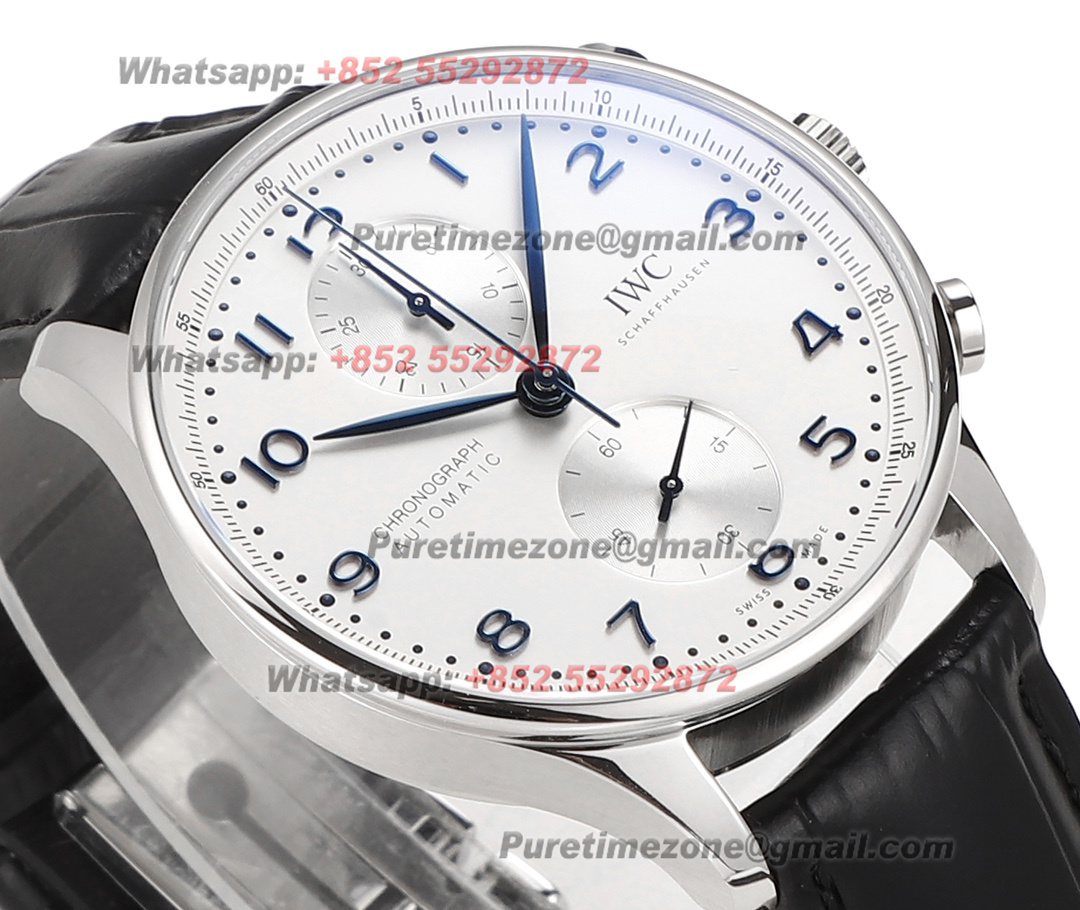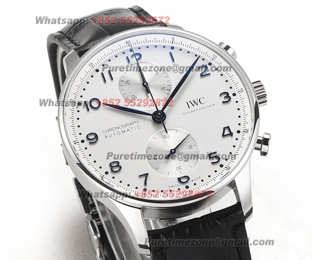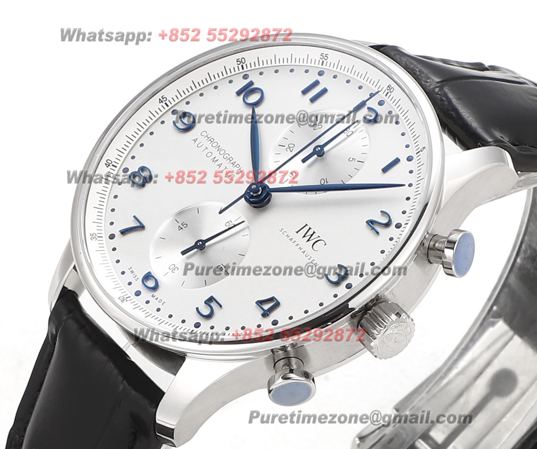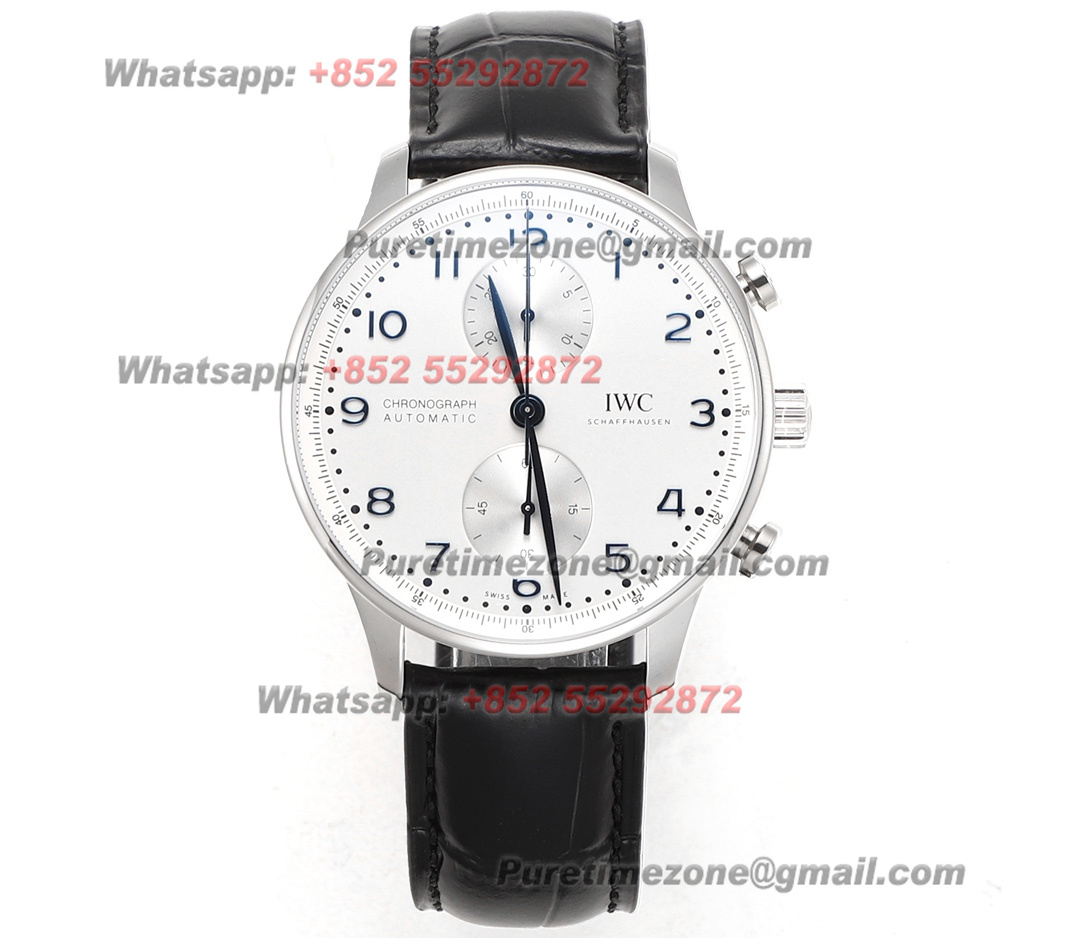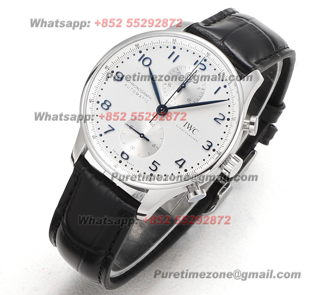 Portugieser Chronograph IW371605 Automatic Mens Watch Super Clone V6SF 41 Silver Dial Black Leather Strap A69355