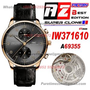 Portugieser Chronograph IW371610 Automatic Mens Watch Super Clone AZF RG Gray Dial Black Leather Strap A69355 $680.00 $520.00