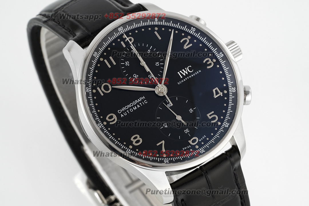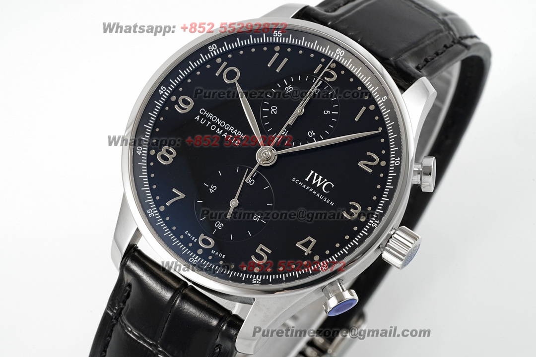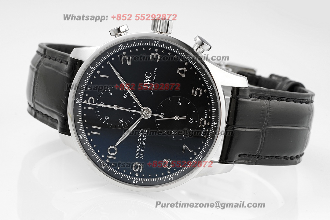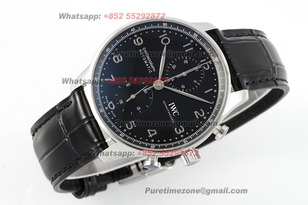 Portugieser Chronograph IW371609 Automatic Mens Watch Super Clone AZF Black Dial Black Leather Strap A69355