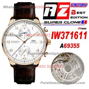 Portugieser Chronograph IW371611 Automatic Mens Watch Super Clone AZF RG Silver Dial Brown Leather Strap A69355 $680.00 $520.00
