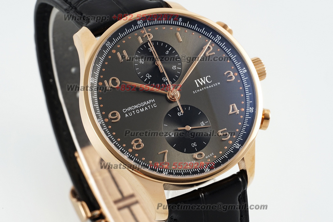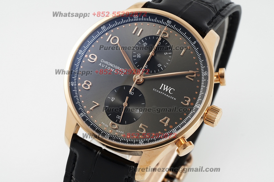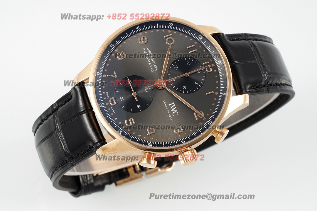 Portugieser Chronograph IW371610 Automatic Mens Watch Super Clone AZF RG Gray Dial Black Leather Strap A69355