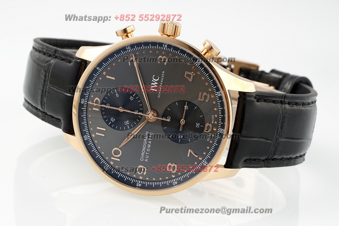 Home IWC Portugieser Portugieser Chronograph IW371610 Automatic Mens Watch Super Clone AZF RG Gray Dial Black Leather Strap A69355