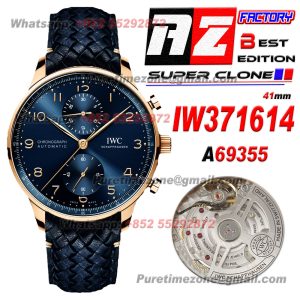 Portugieser Chronograph IW371614 Automatic Mens Watch Super Clone AZF RG Blue Dial Blue Leather Strap A69355 $680.00 $520.00