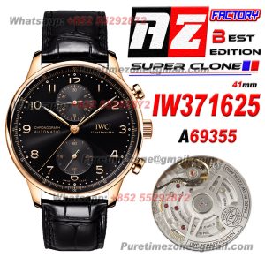 Portugieser Chronograph IW371625 Automatic Mens Watch Super Clone AZF RG Black Dial Black Leather Strap A69355 $680.00 $520.00