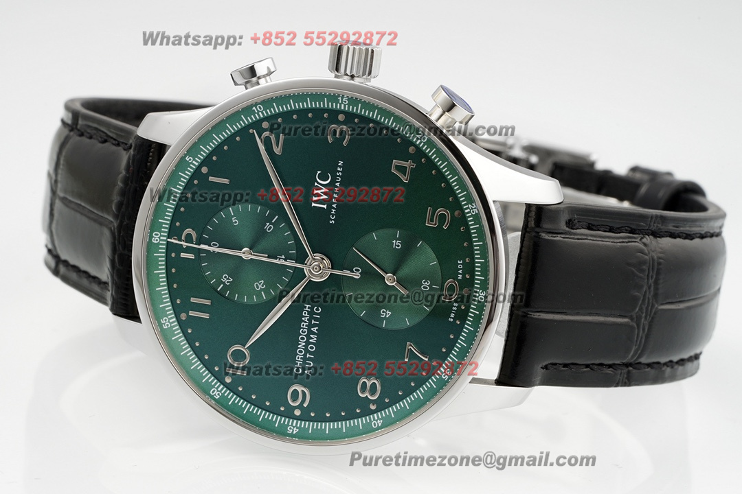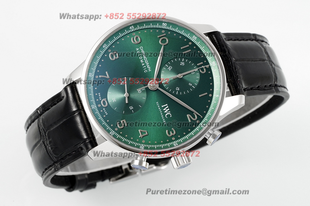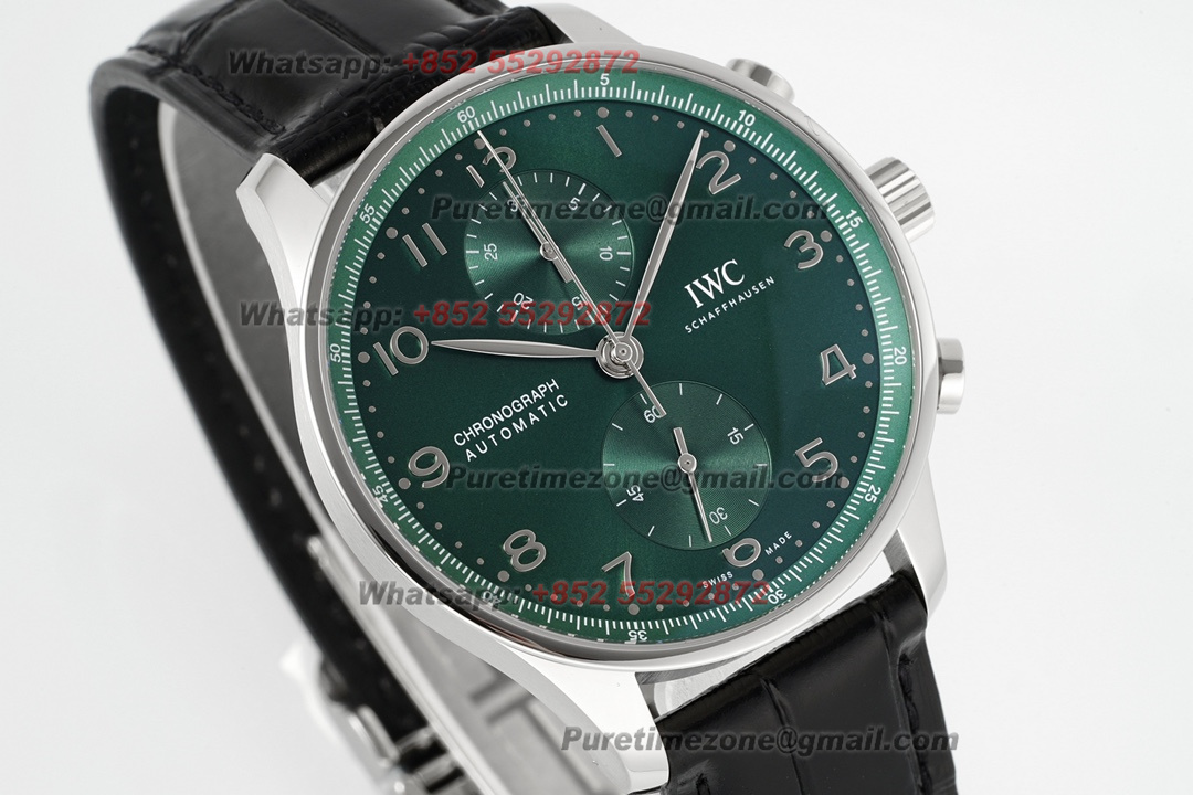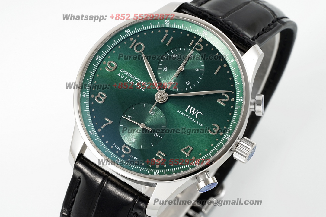 Portugieser Chronograph IW371615 Automatic Mens Watch Super Clone AZF Green Dial Black Leather Strap A69355