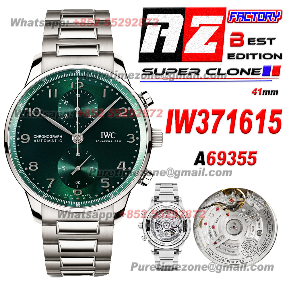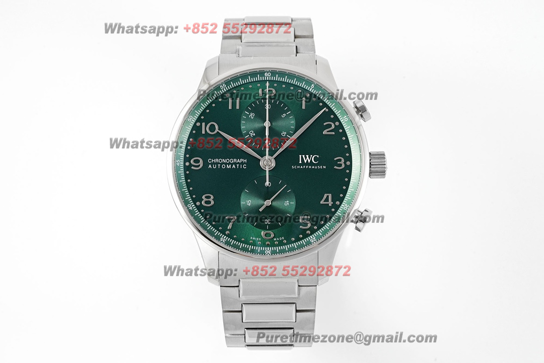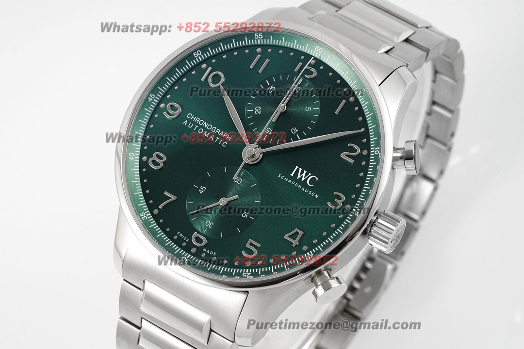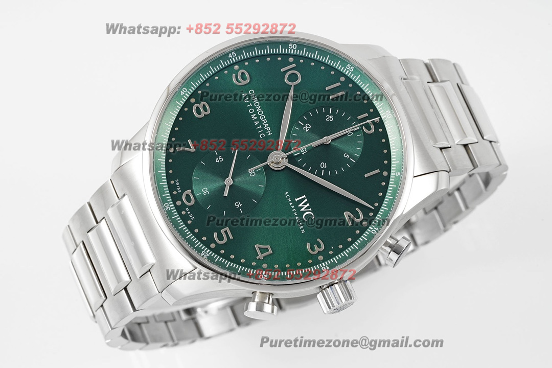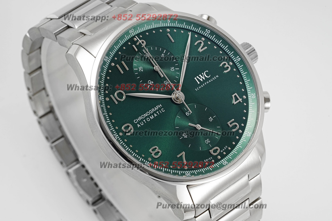 Portugieser Chronograph IW371615 Automatic Mens Watch Super Clone AZF Green Dial SS Bracelet A69355