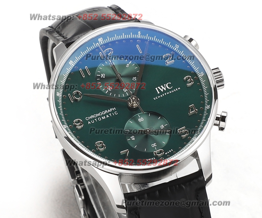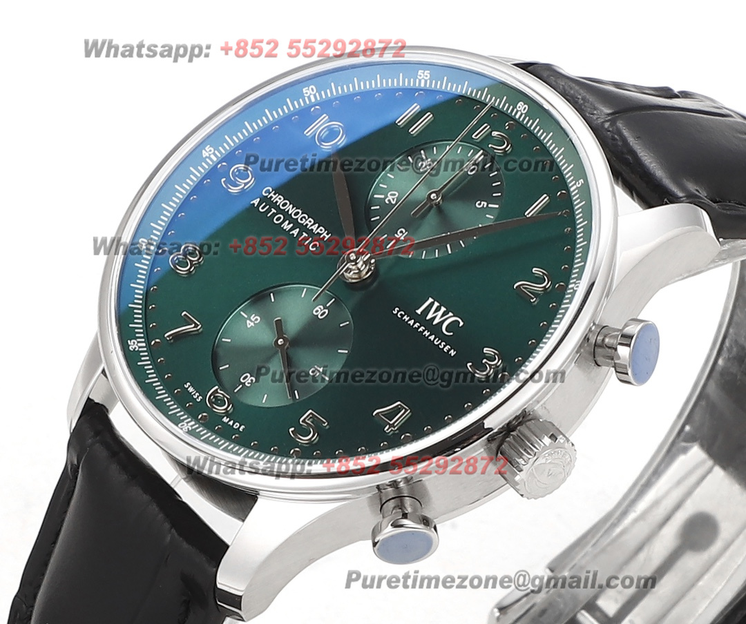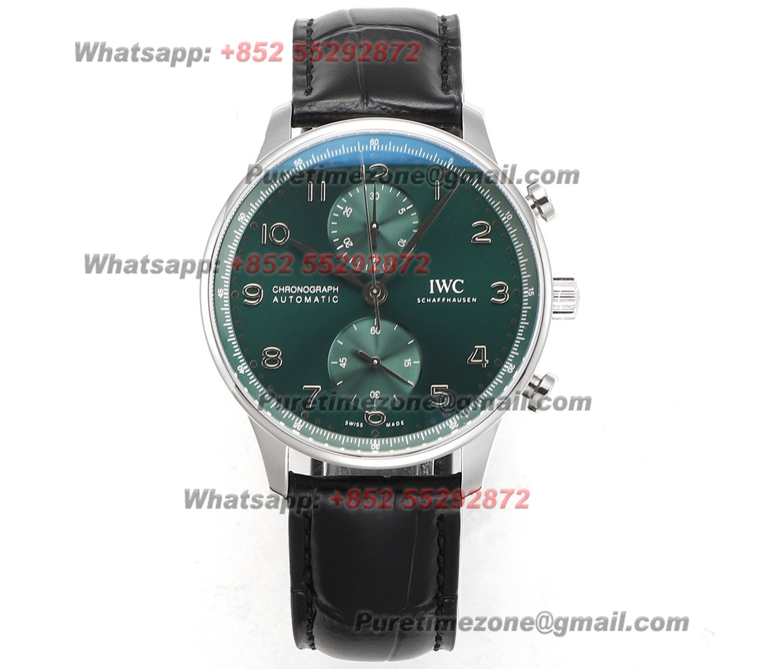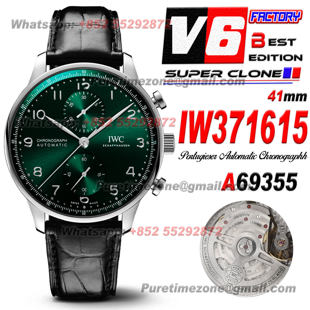 Portugieser Chronograph IW371615 Automatic Mens Watch Super Clone V6SF 41 Green Dial Black Leather Strap A69355