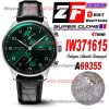 Portugieser Chronograph IW371615 Automatic Mens Watch Super Clone ZF 41 Green Dial Black Leather Strap A7750