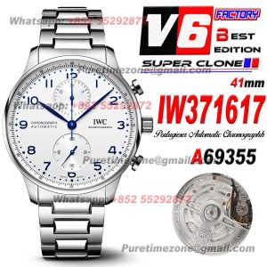 Be the first to review “Portugieser Chronograph IW371617 Automatic Mens Watch Super Clone V6SF 41 Silver RG Dial SS Bracelet A69355” Cancel reply