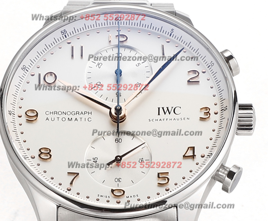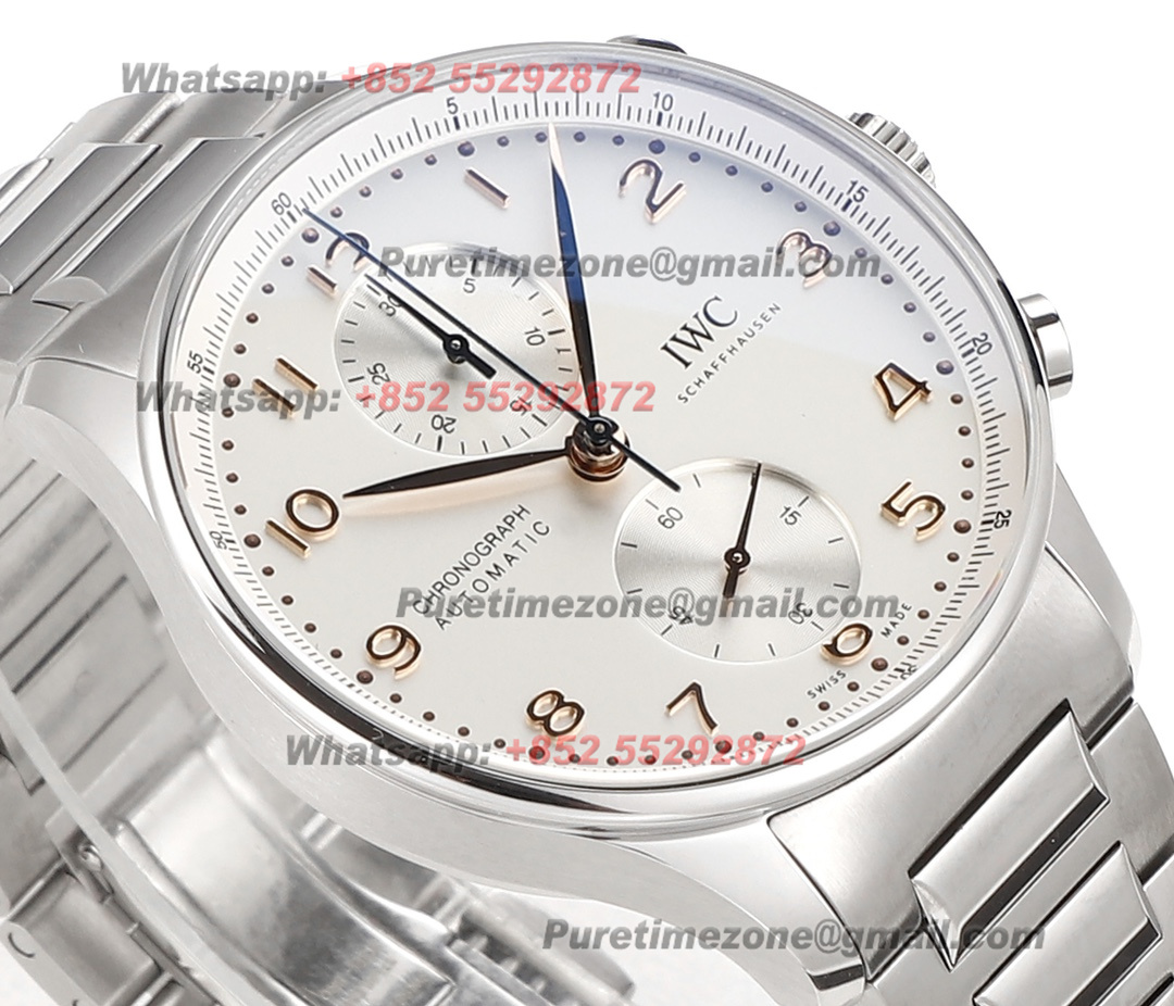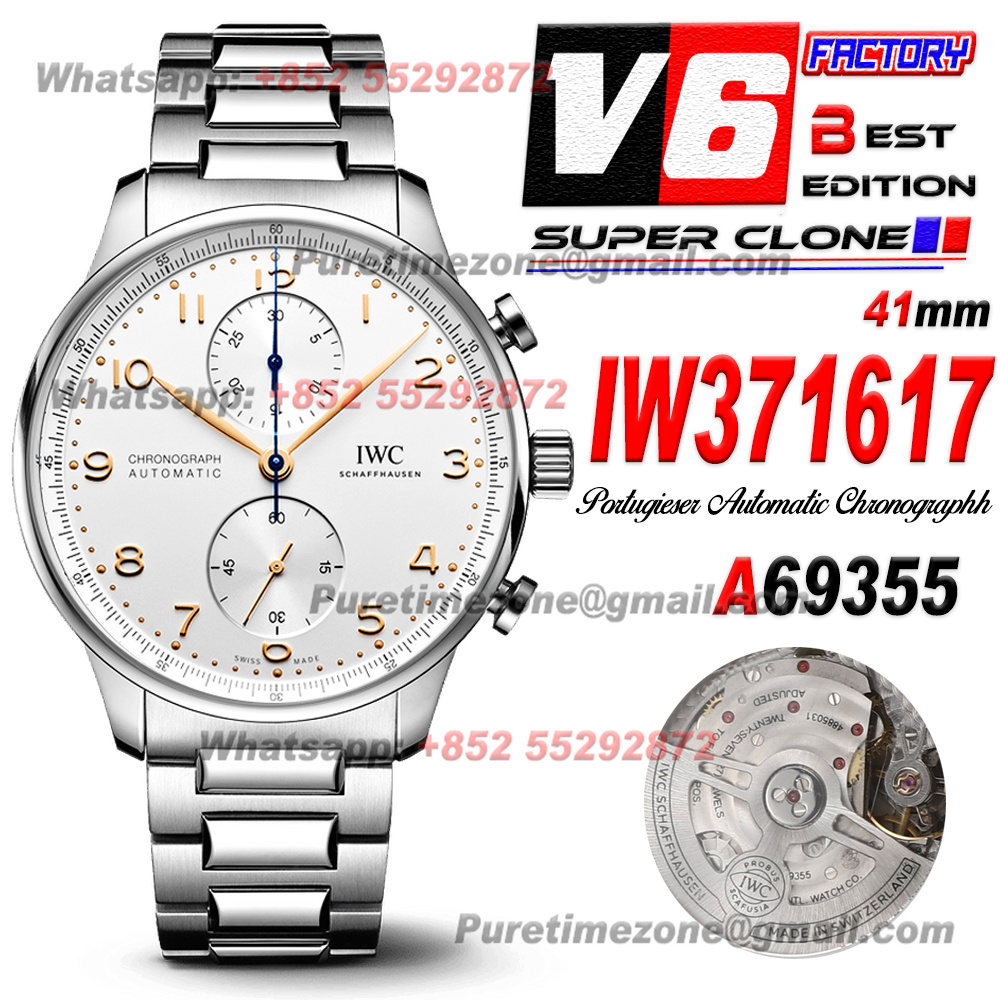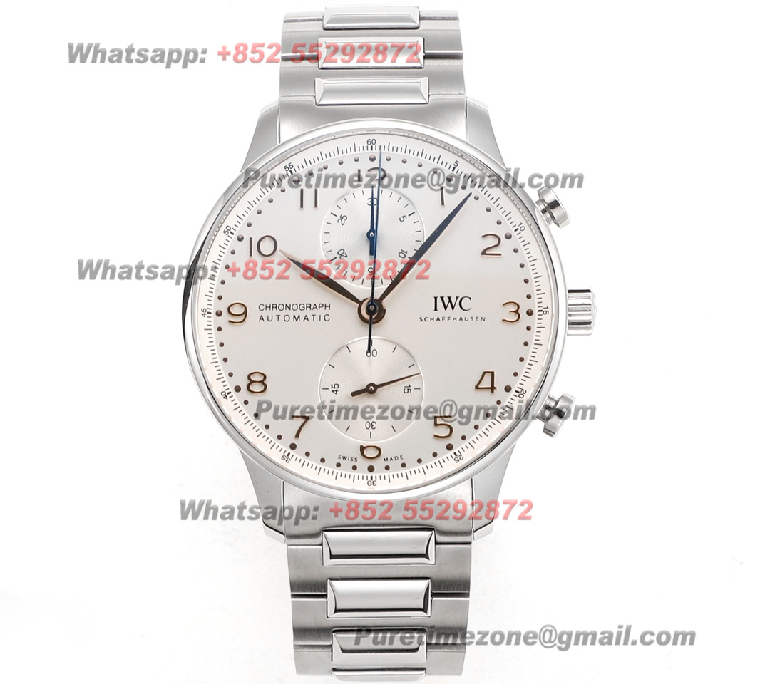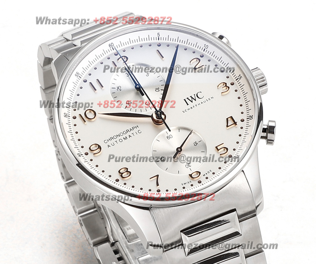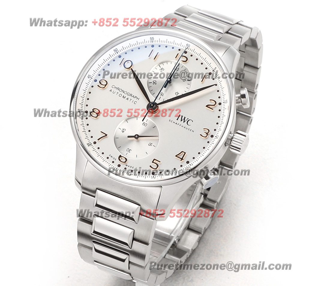 Portugieser Chronograph IW371617 Automatic Mens Watch Super Clone V6SF 41 Silver RG Dial SS Bracelet A69355