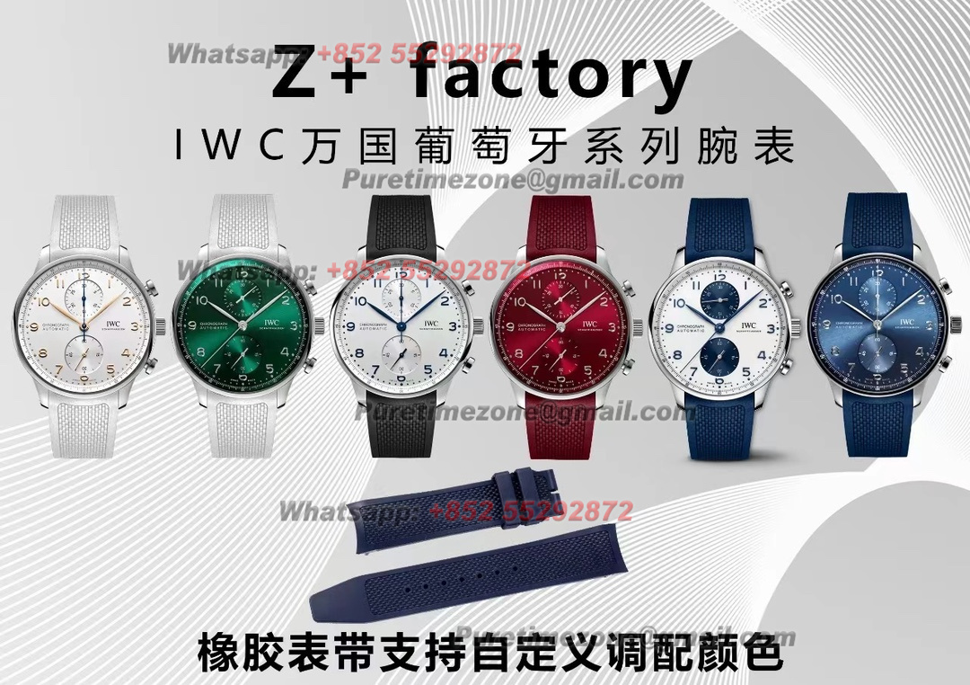 Portugieser Chronograph IW371620 Automatic Men’s Watch Super Clone Z+F 41mm RG Silver Dial Green Rubber Strap A69355