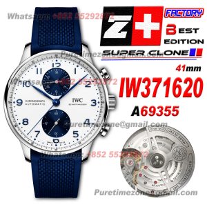 Portugieser Chronograph IW371620 Automatic Men's Watch Super Clone Z+F 41mm White Dial Blue Rubber Strap A69355 $650.00 $550.00
