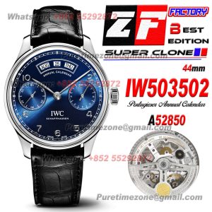 Portugieser Annual Calendar IW503502 Automatic Mens Watch Super Clone ZF 44mm Blue Dial Black Leather Strap A52850 $680.00 $580.00