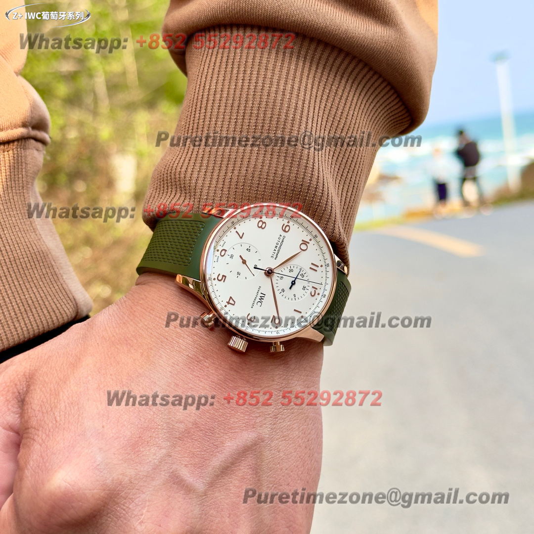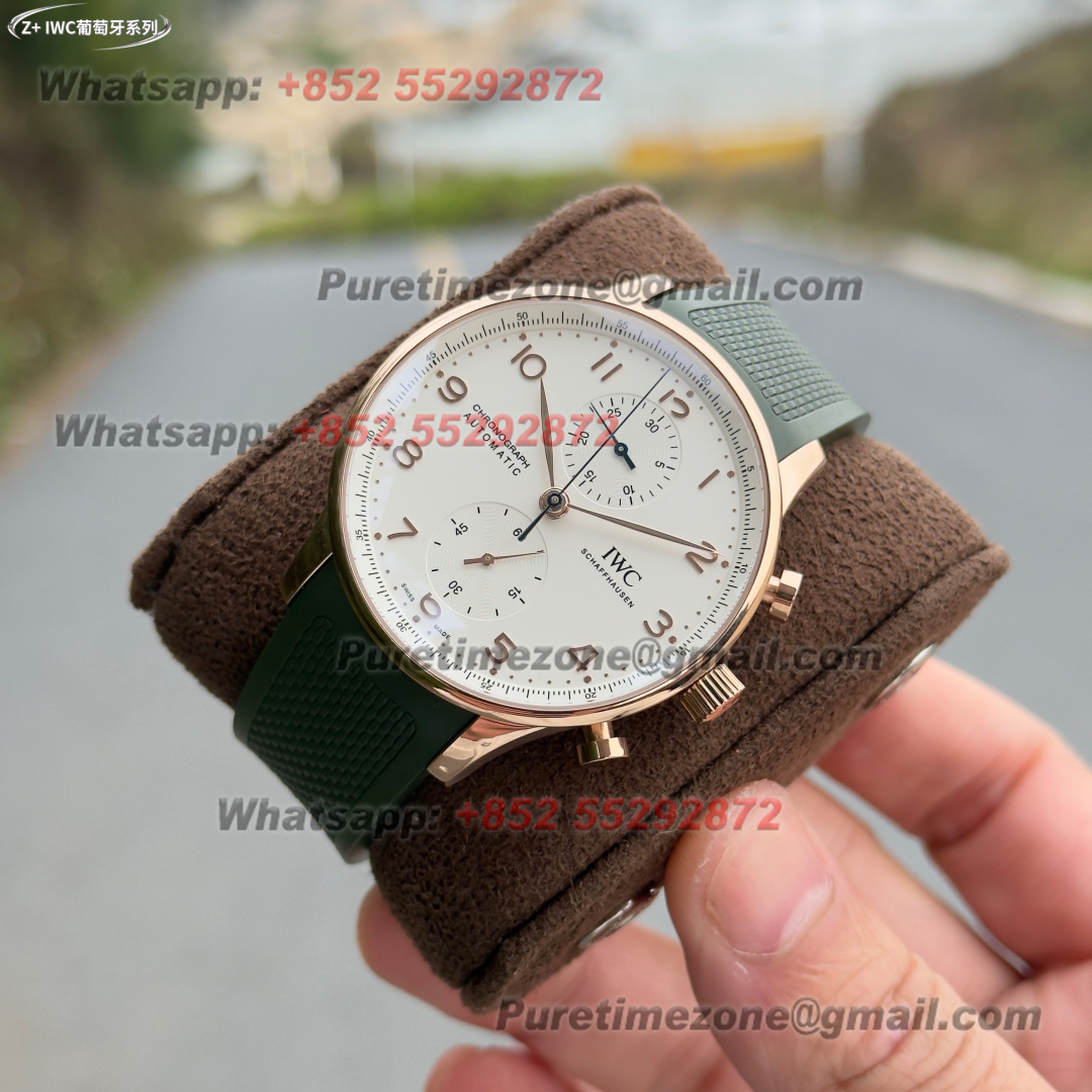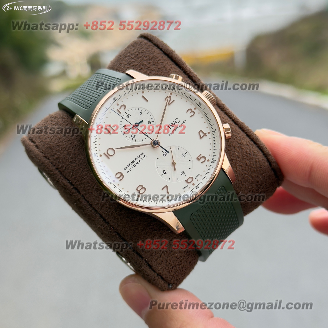 Home IWC Portugieser Portugieser Chronograph IW371620 Automatic Men’s Watch Super Clone Z+F 41mm RG Silver Dial Green Rubber Strap A69355