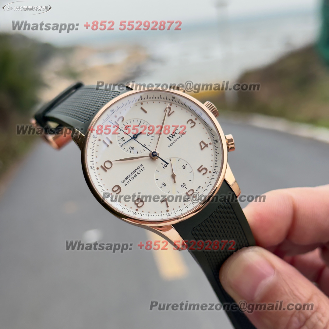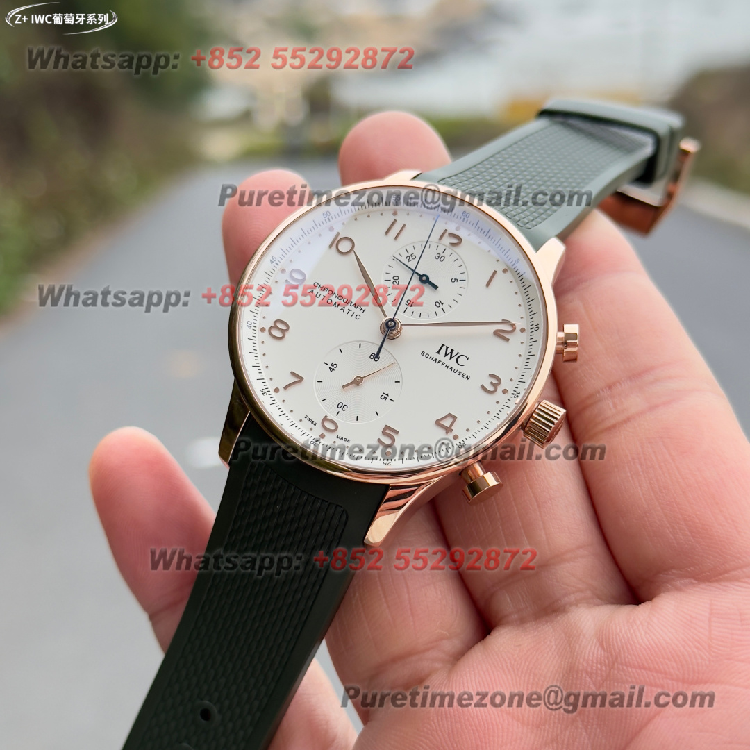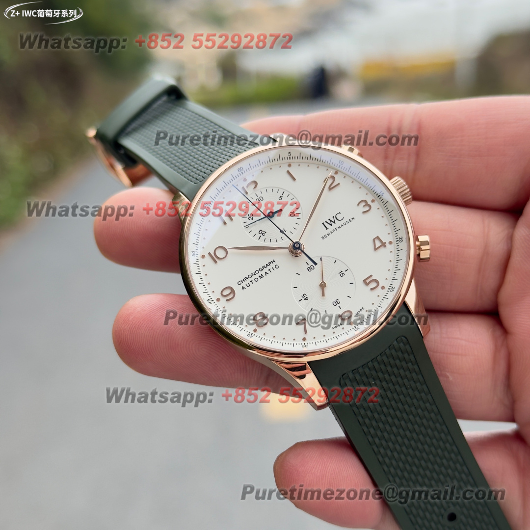 Home IWC Portugieser Portugieser Chronograph IW371620 Automatic Men’s Watch Super Clone Z+F 41mm RG Silver Dial Green Rubber Strap A69355