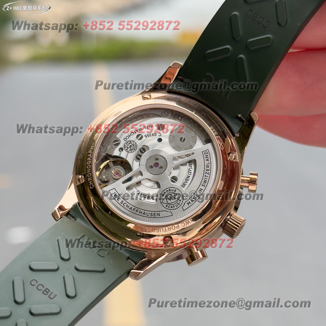 Portugieser Chronograph IW371620 Automatic Men’s Watch Super Clone Z+F 41mm RG Silver Dial Green Rubber Strap A69355