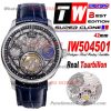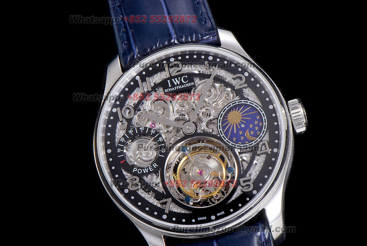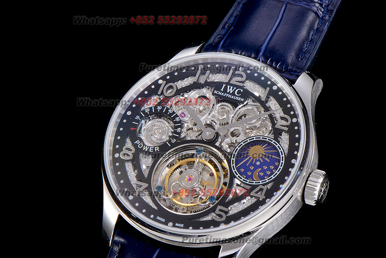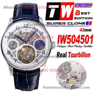 Portugieser Constant-Force Tourbillon IW504501 Manual Wind Mens Watch Super Clone TWF 42 Skeleton Dial Blue Leather Strap