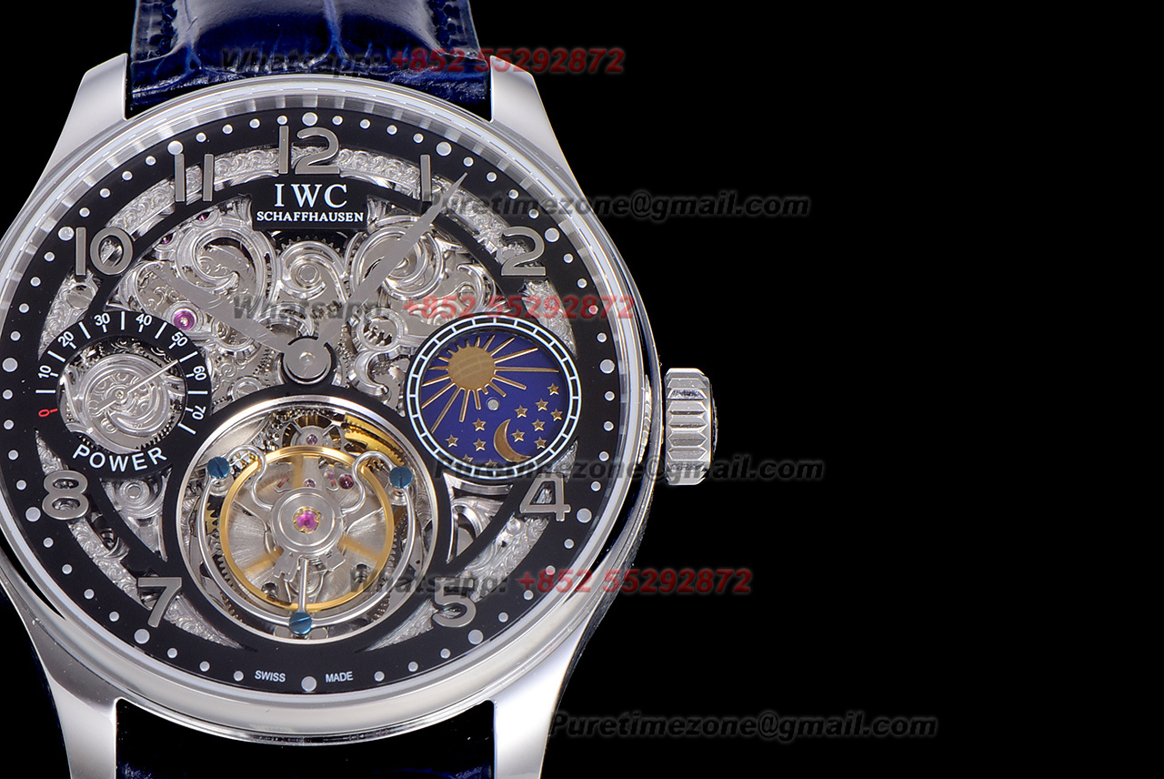 Home IWC Portugieser Portugieser Constant-Force Tourbillon IW504501 Manual Wind Mens Watch Super Clone TWF 42 Skeleton Dial Blue Leather Strap