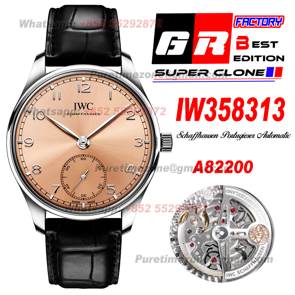 Portugieser IW358313 Automatic Mens Watch Super Clone GRF 41mm Beige Dial Black Leather Strap A82200