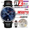 Portugieser IW500710 Automatic Mens Watch Super Clone AZF 41mm Blue Dial Black Leather Strap A69355
