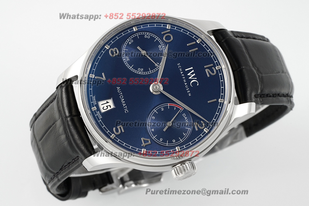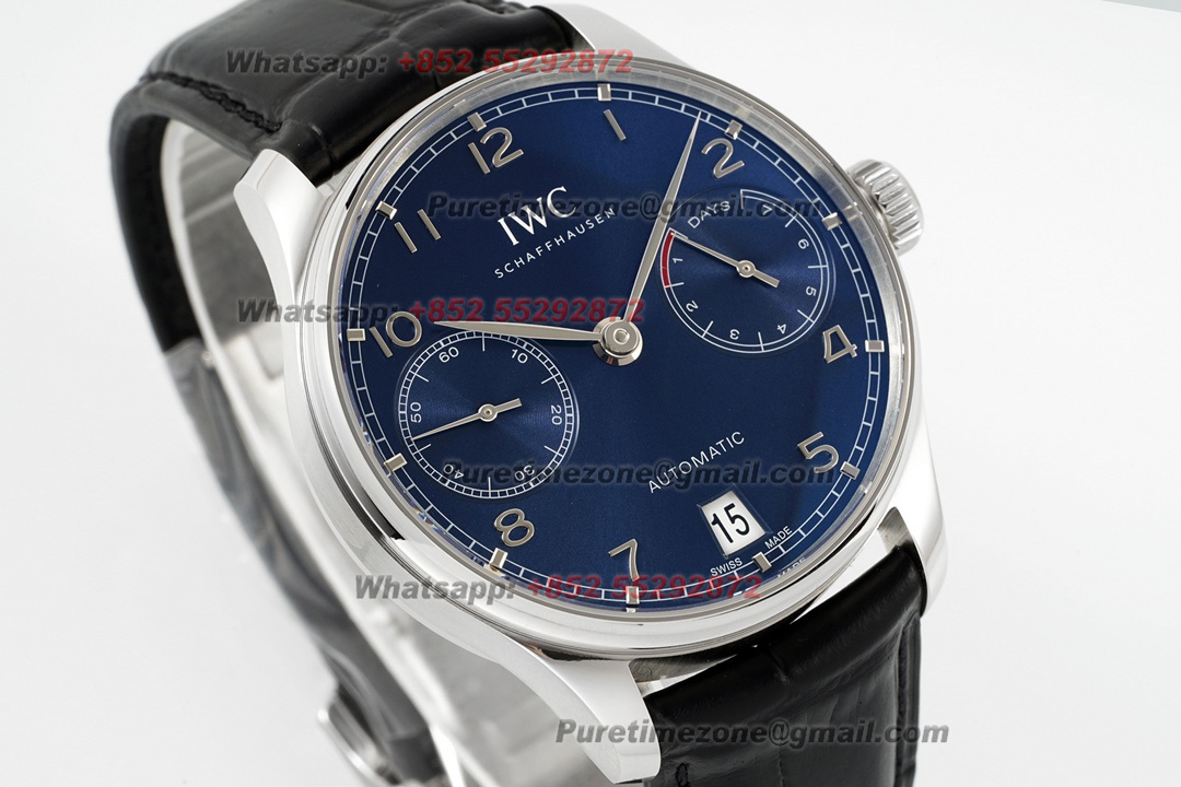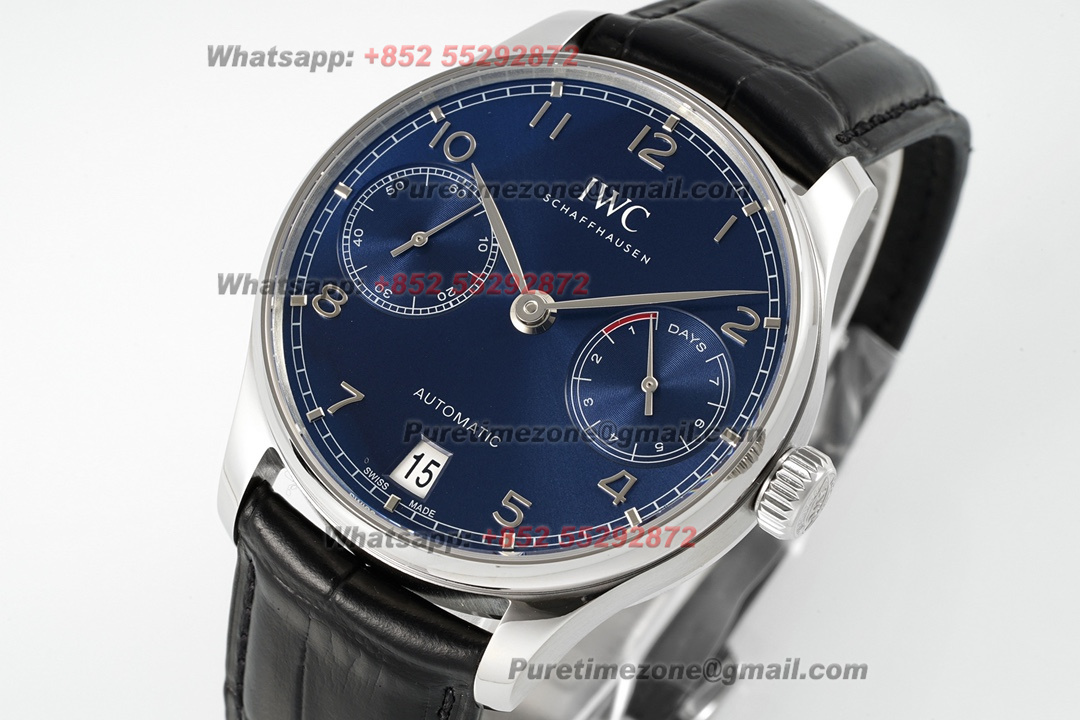 Home IWC Portugieser Portugieser IW500710 Automatic Mens Watch Super Clone AZF 41mm Blue Dial Black Leather Strap A69355