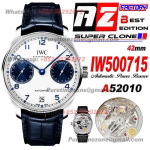 Portugieser IW500715 Automatic Mens Watch Super Clone AZF 41mm White Dial Blue Leather Strap A69355 $680.00 $520.00
