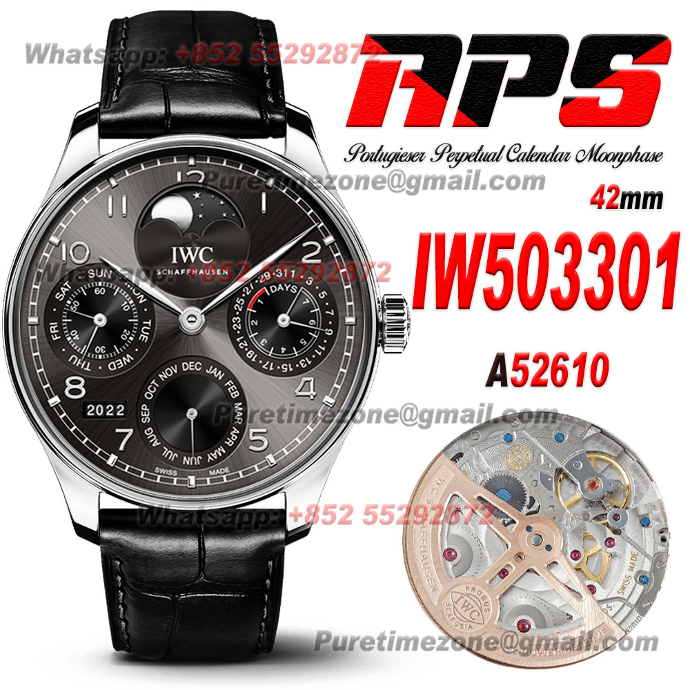 Portugieser Perpetual Calendar IW503301 A52610 Automatic Mens Watch APSF Gray Dial Leather Strap Super Clone