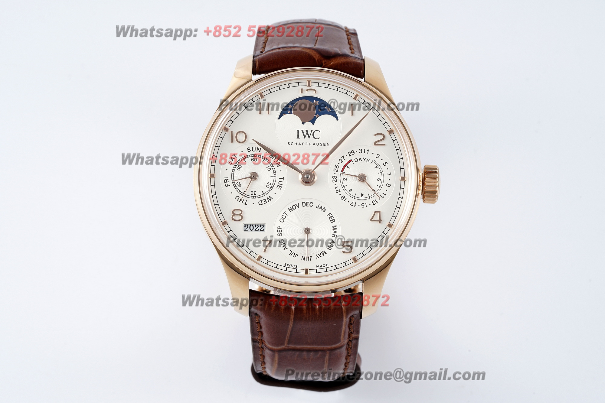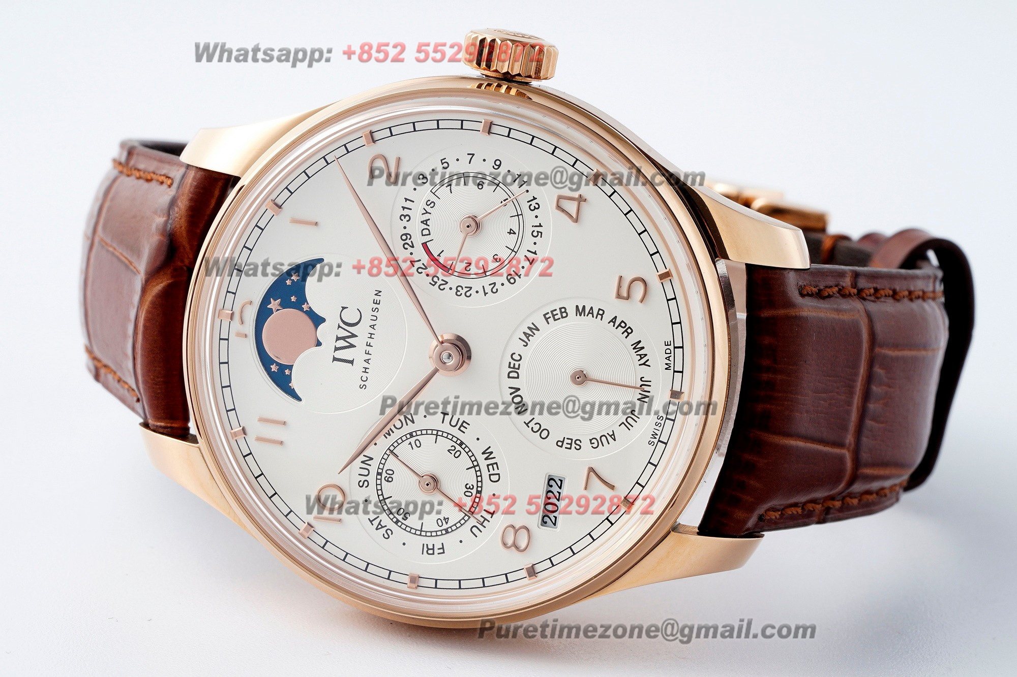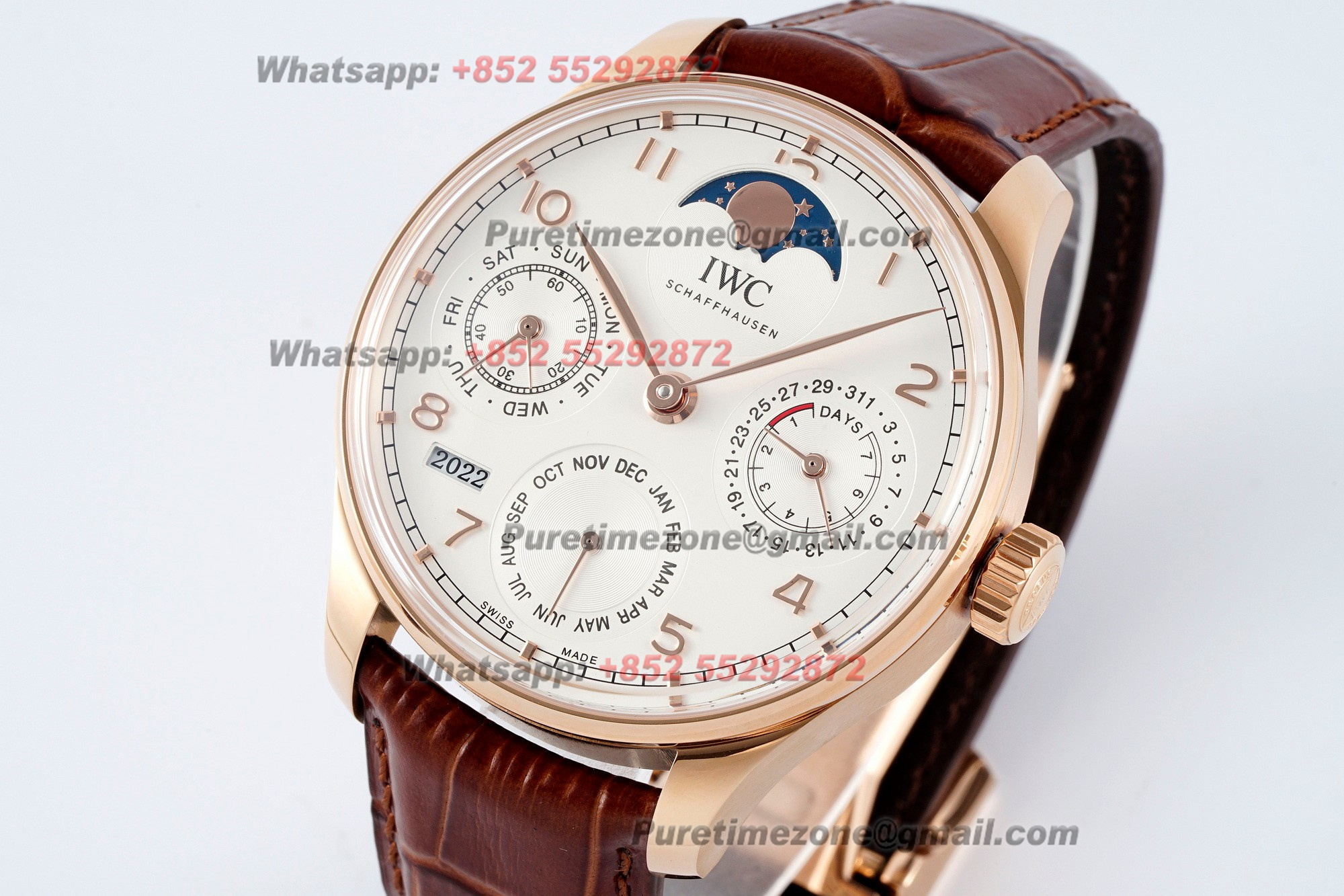 Portugieser Perpetual Calendar IW503312 A52610 Automatic Mens Watch APSF RG Blue Dial Leather Strap Super Clone $850.00 $700.00