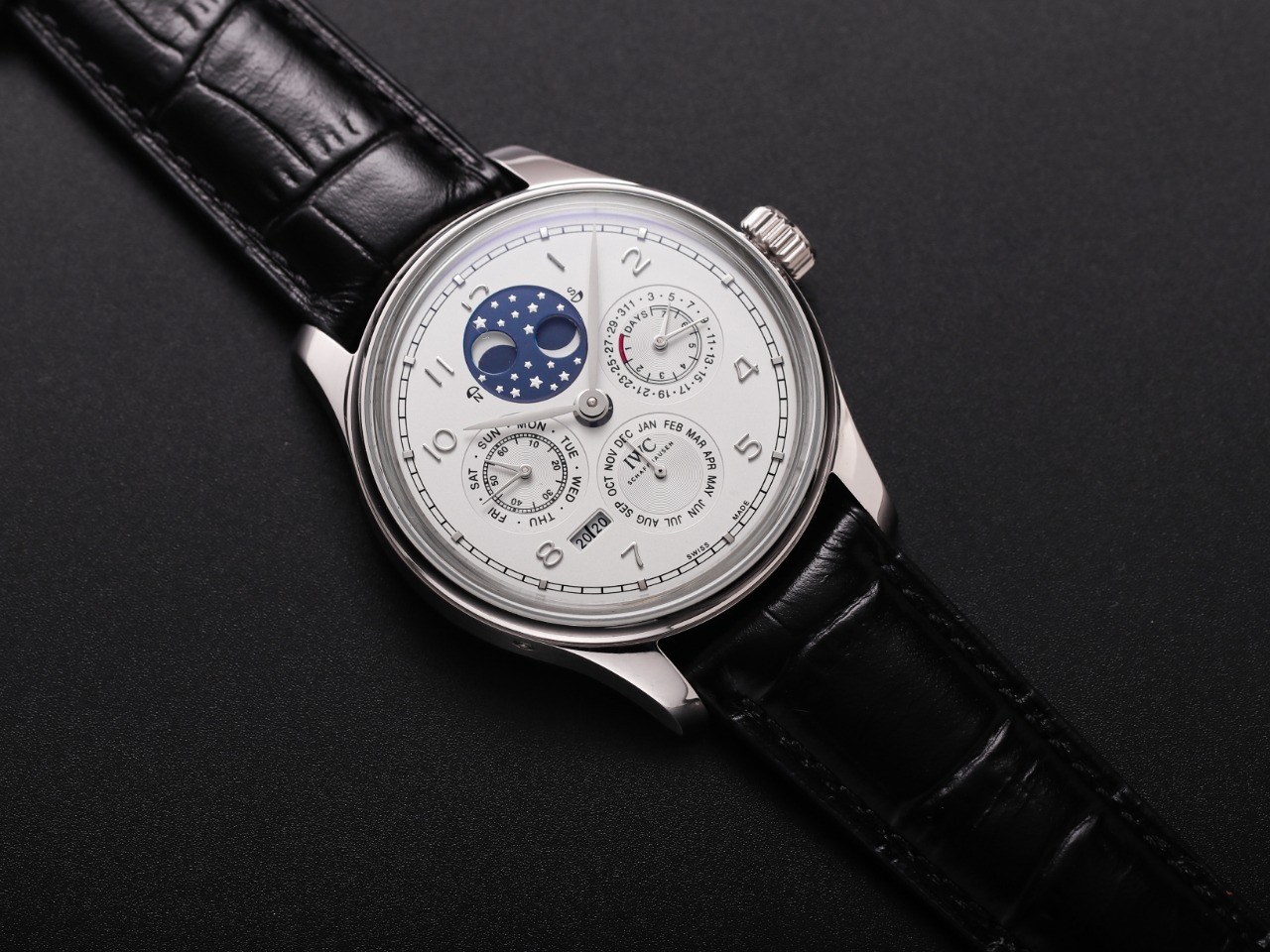 Movement:Asian 23J automatic movement decorated to IWC 52610 movement, Perpetual Calendar display