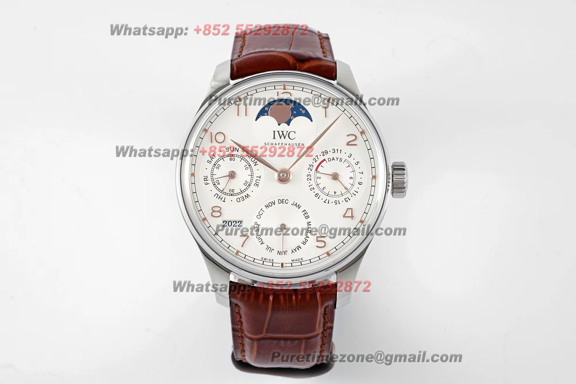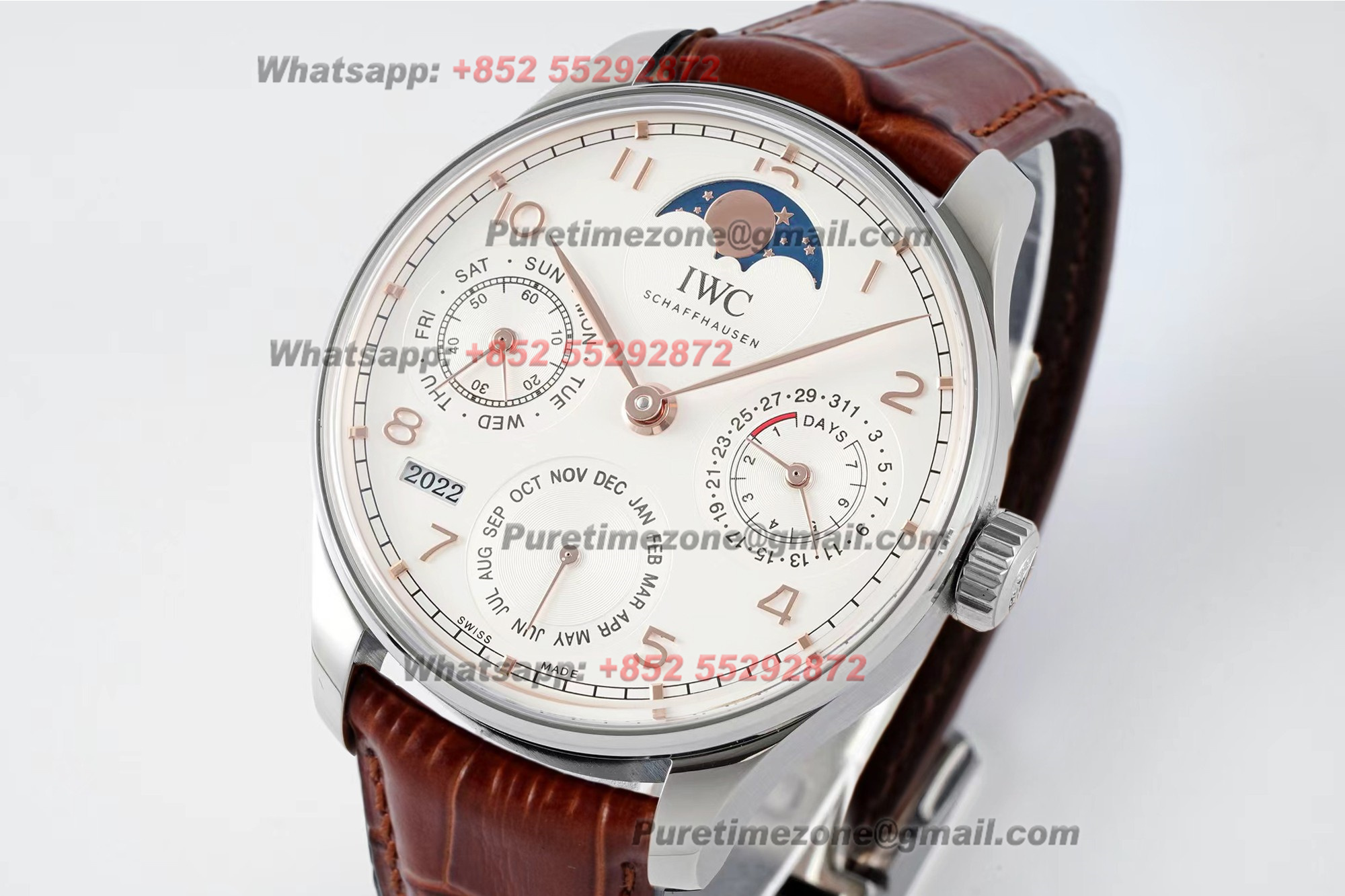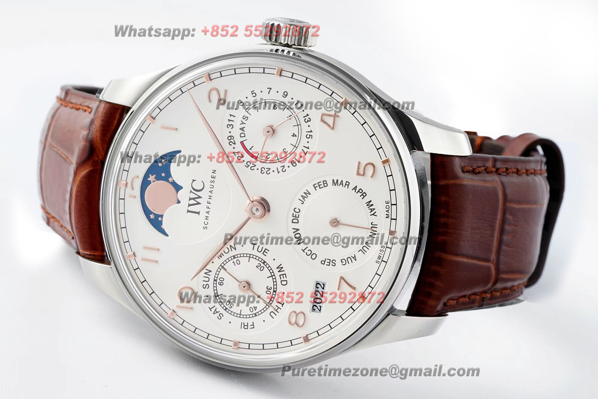 Portugieser Perpetual Calendar IW503307 A52610 Automatic Mens Watch APSF White Dial Leather Strap Super Clone