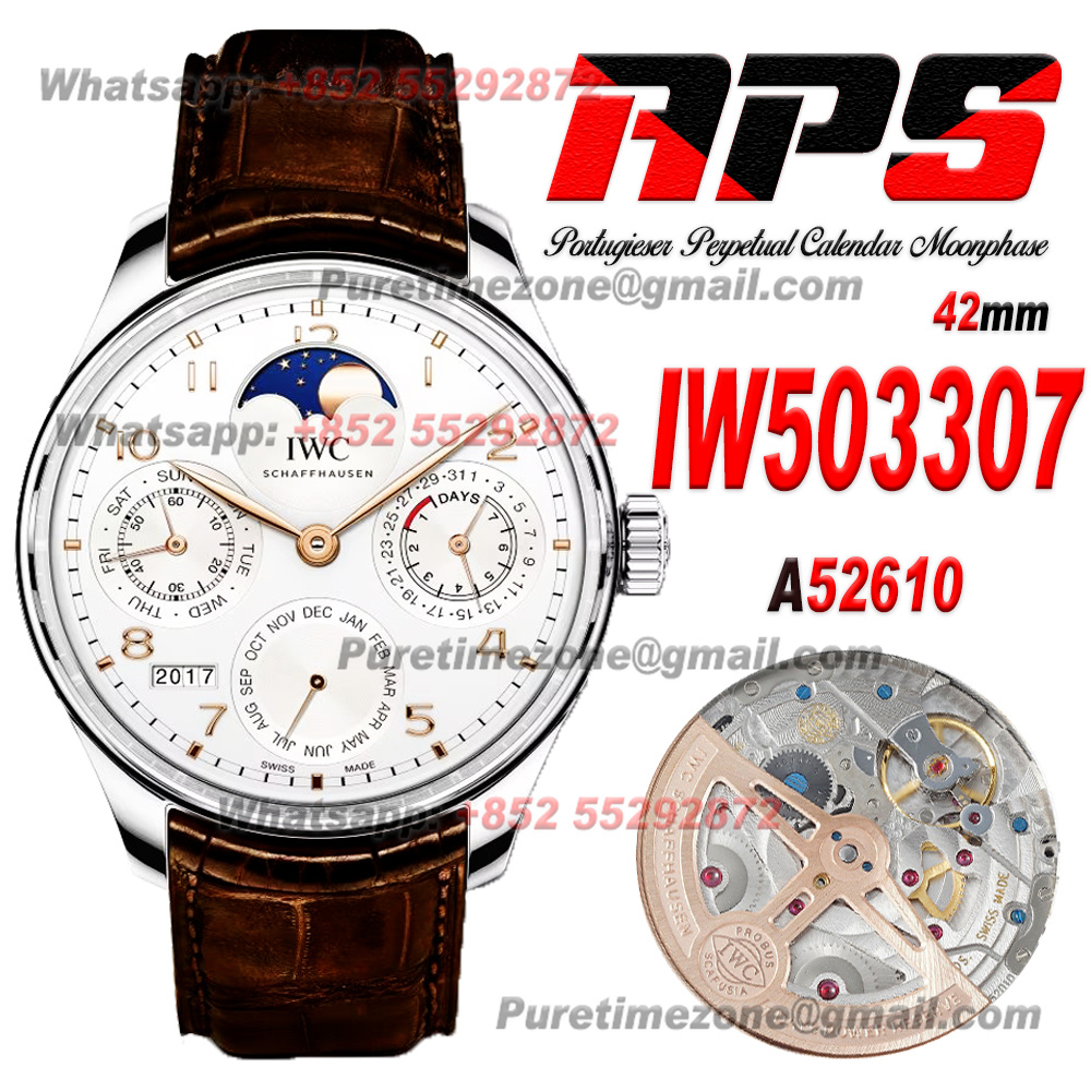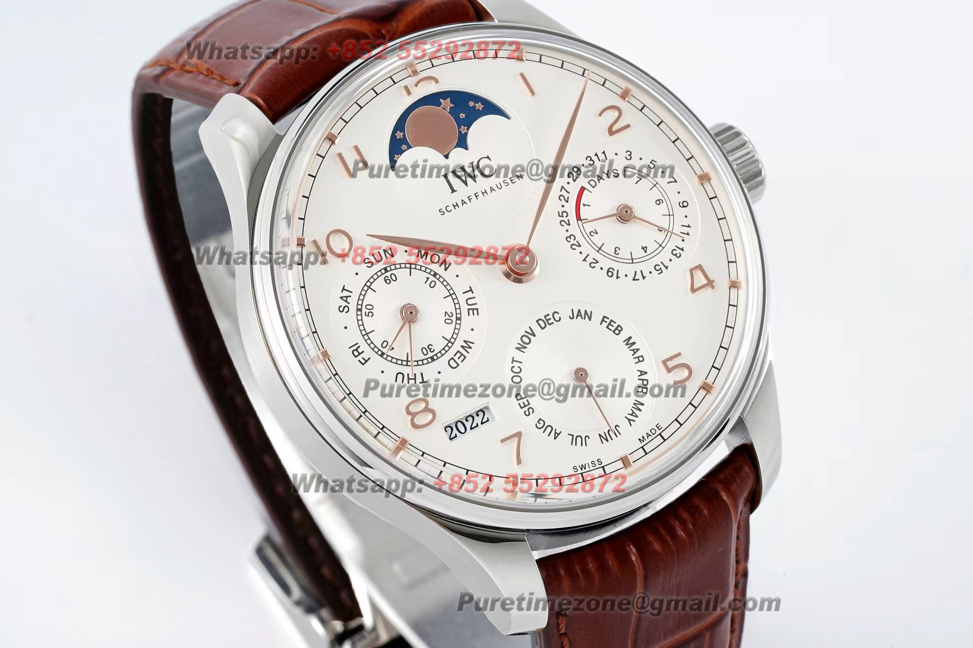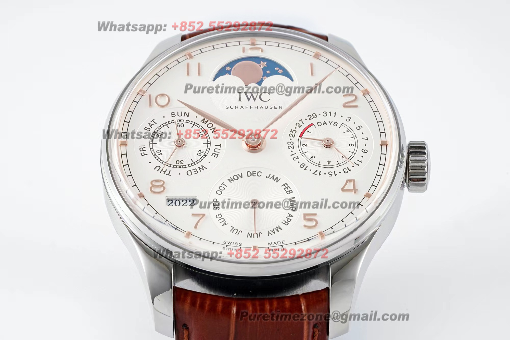 Portugieser Perpetual Calendar IW503307 A52610 Automatic Mens Watch APSF White Dial Leather Strap Super Clone