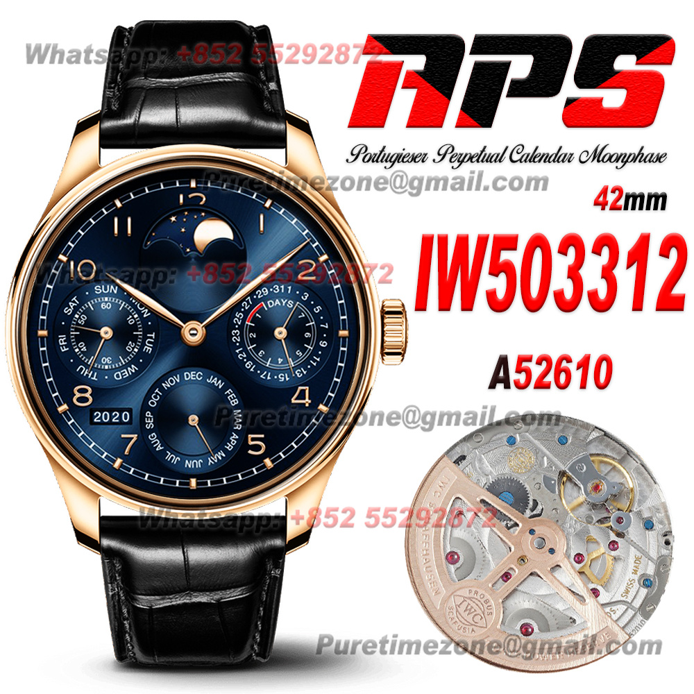 Portugieser Perpetual Calendar IW503312 A52610 Automatic Mens Watch APSF RG Blue Dial Leather Strap Super Clone