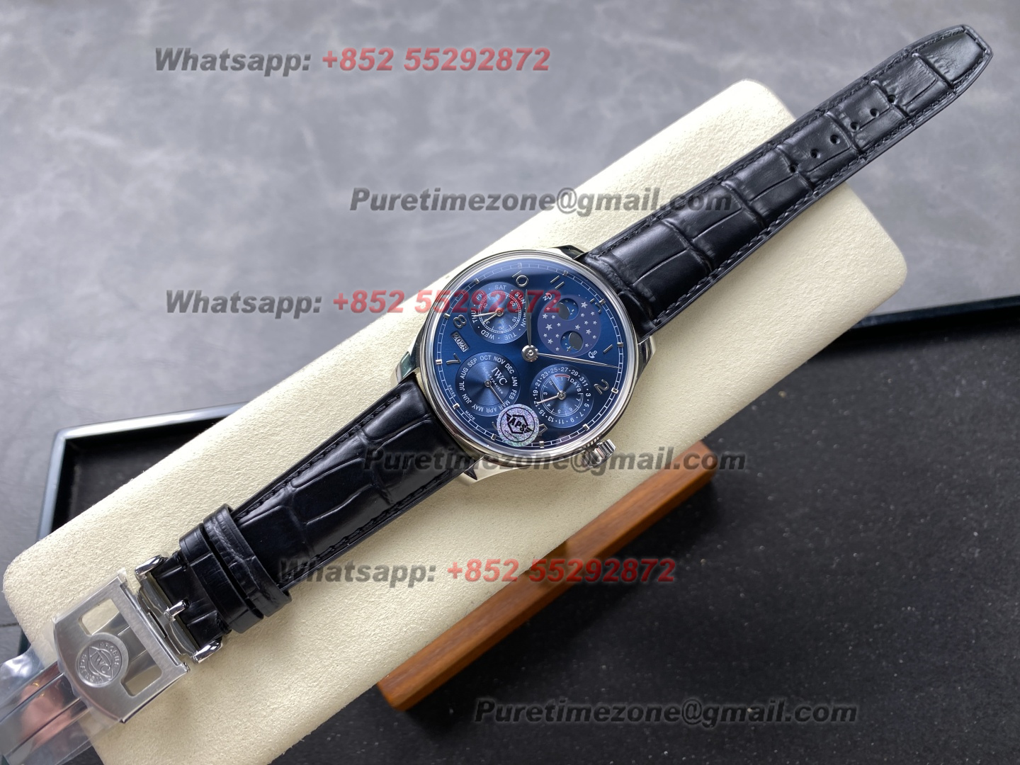 Portugieser Perpetual Calendar IW503401 A52610 Automatic Mens Watch APSF Blue Dial Leather Strap Super Clone