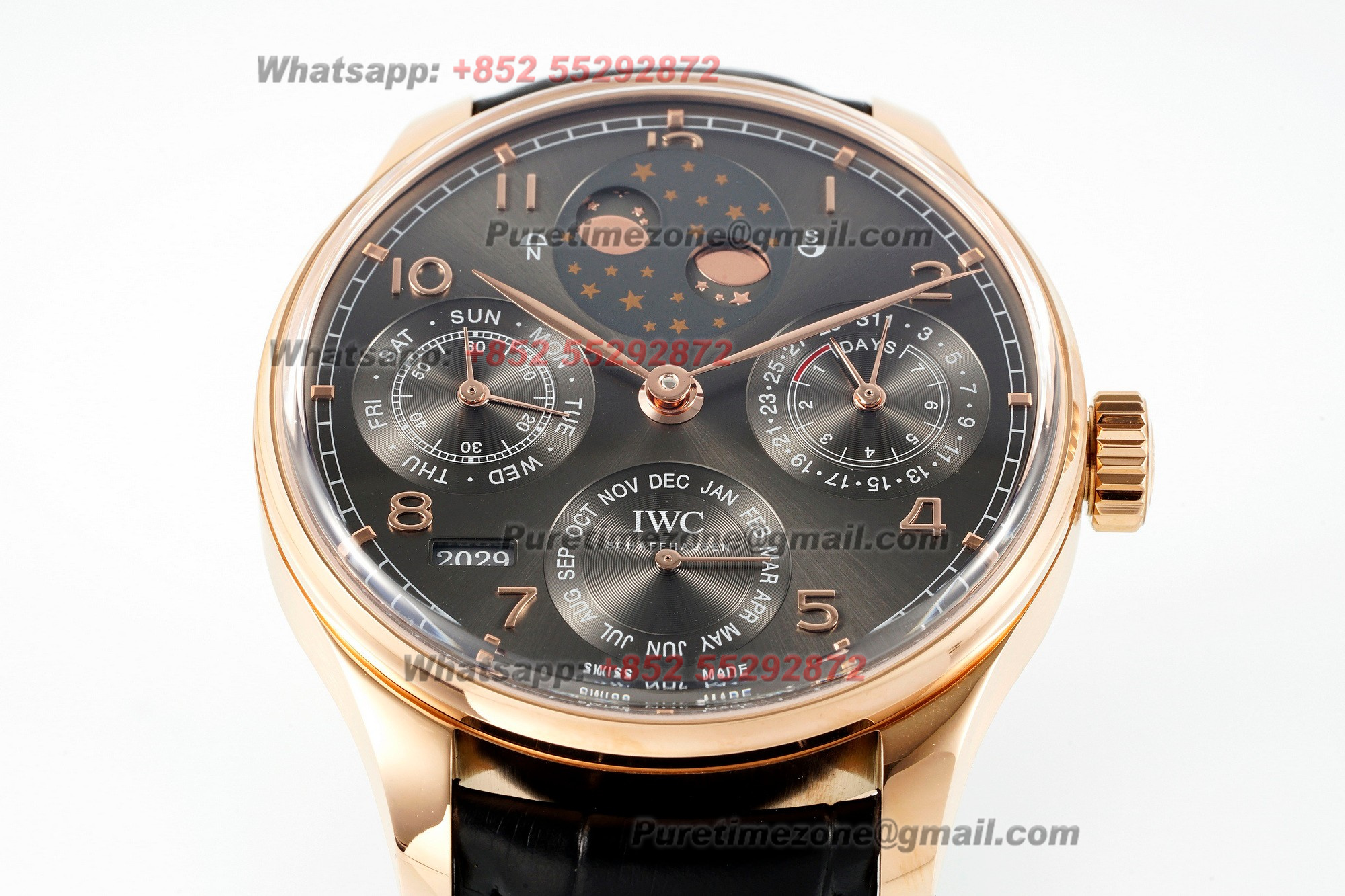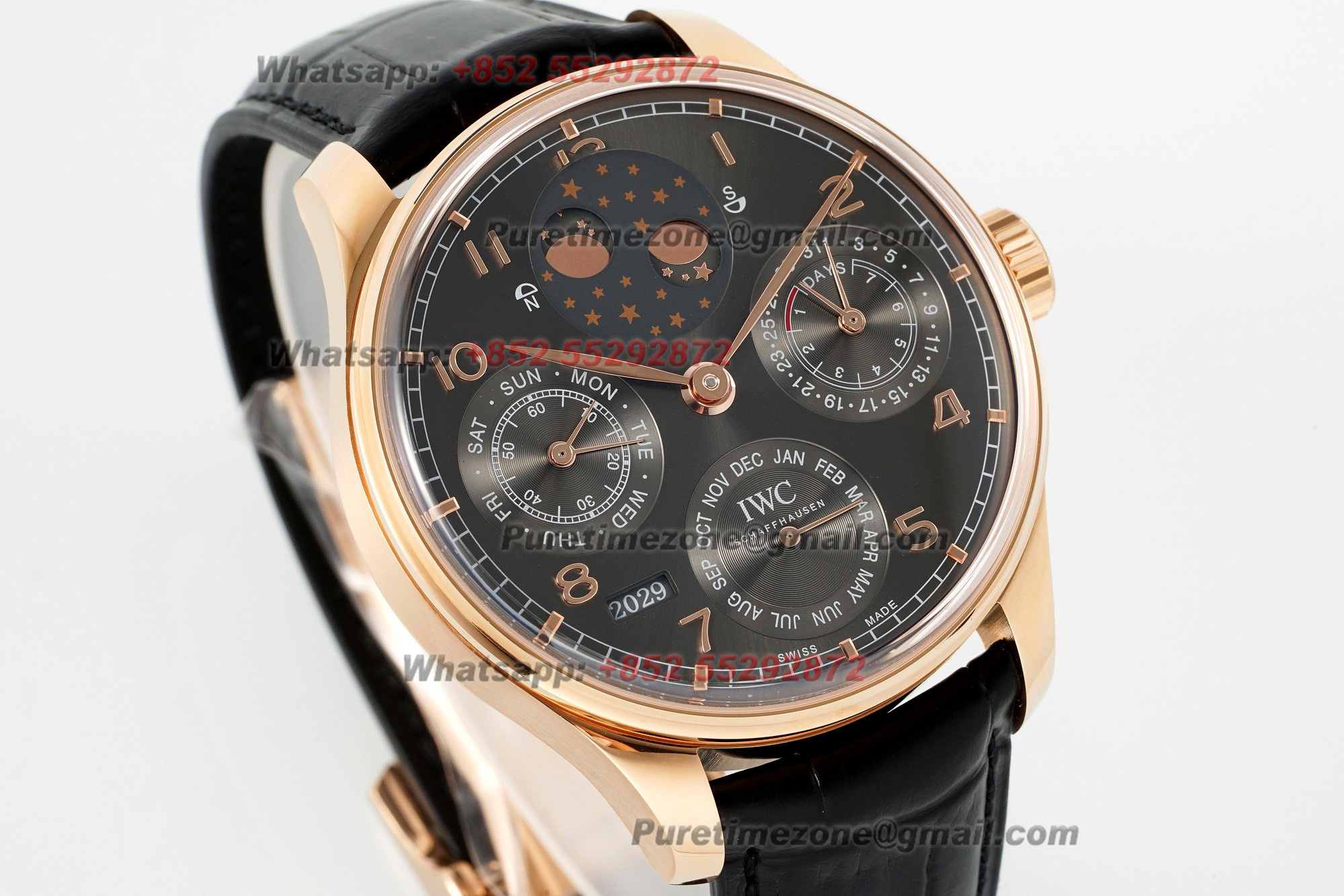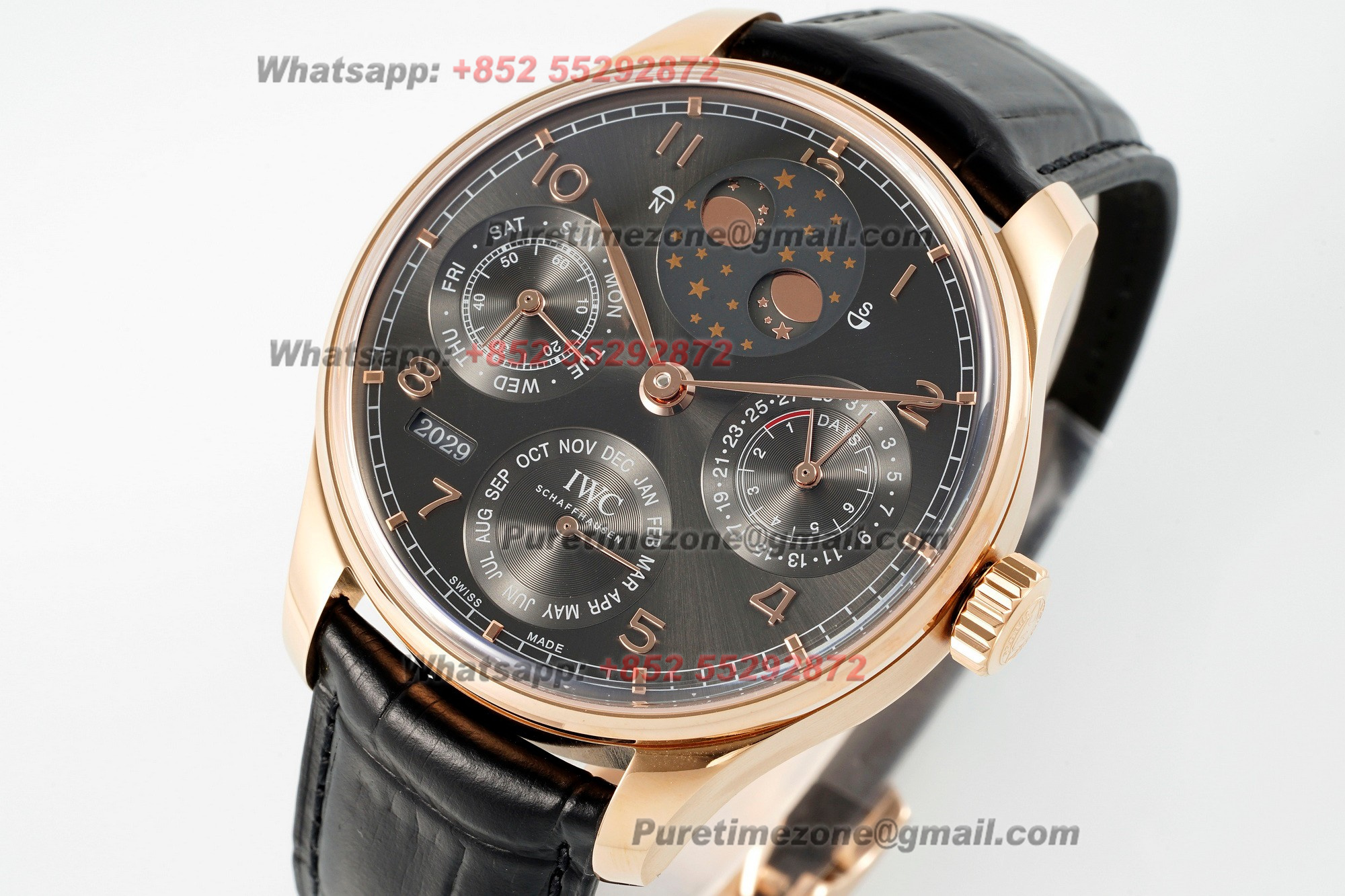Portugieser Perpetual Calendar IW503404 A52610 Automatic Mens Watch APSF RG Gray Dial Leather Strap Super Clone
