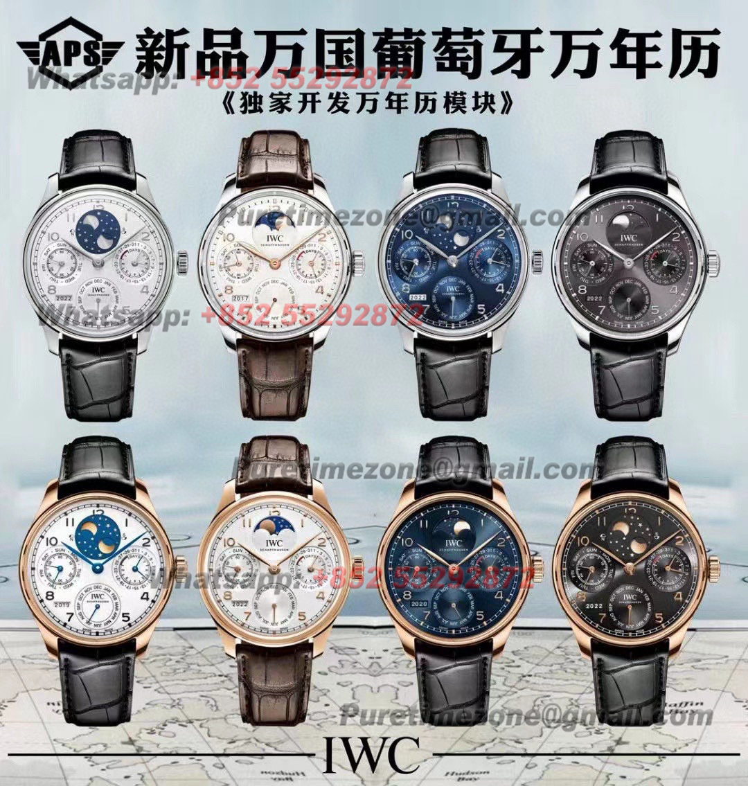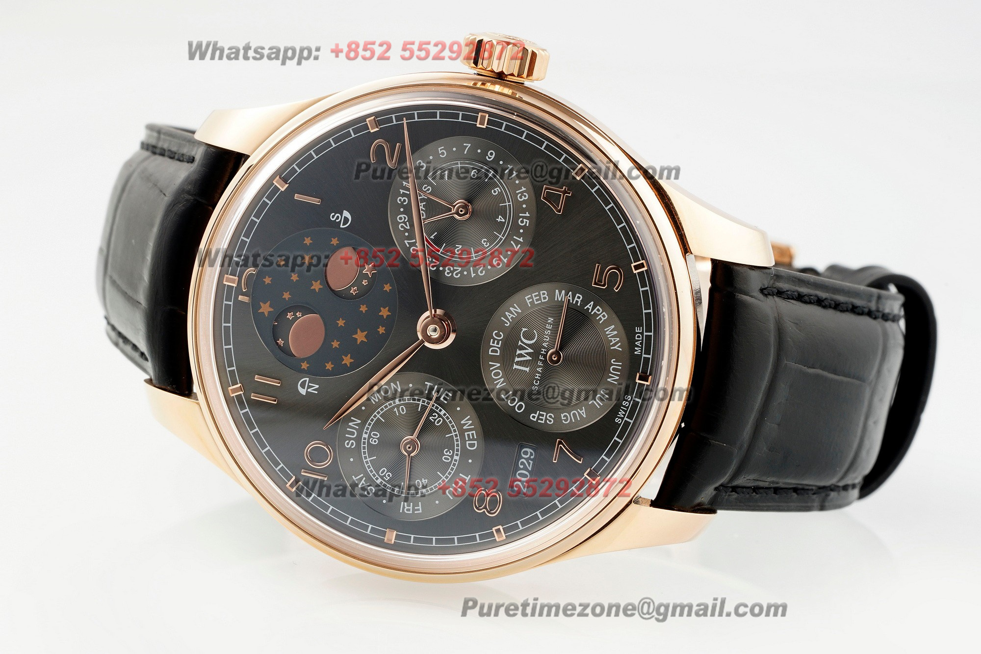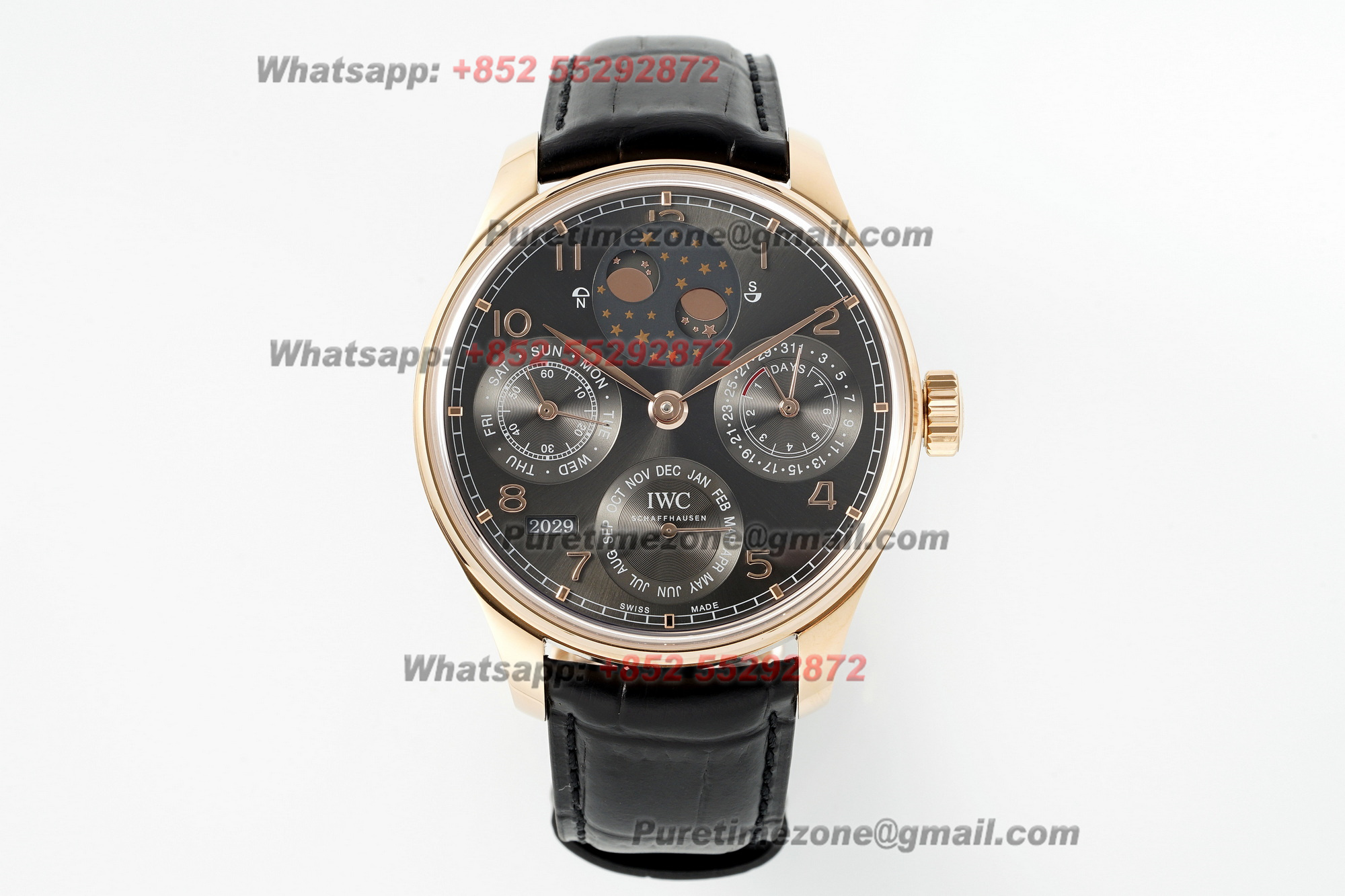 Portugieser Perpetual Calendar IW503404 A52610 Automatic Mens Watch APSF RG Gray Dial Leather Strap Super Clone