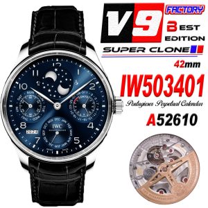Portugieser Perpetual Calendar IW503404 Automatic Men’s Watch Super Clone V9F RG Gray Dial Black Leather Strap A52610