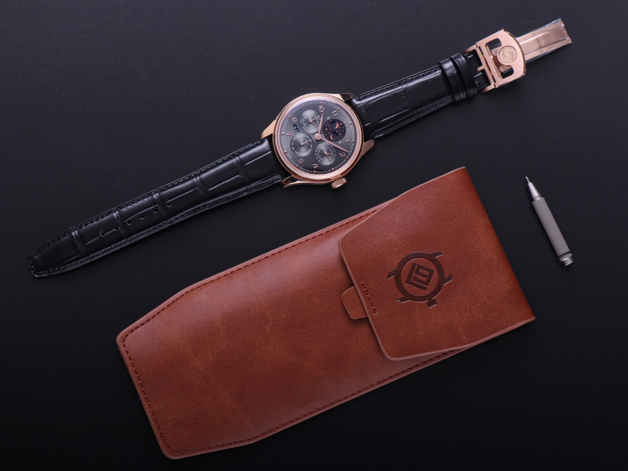 Movement:Asian 23J automatic movement decorated to IWC 52610 movement, Perpetual Calendar display