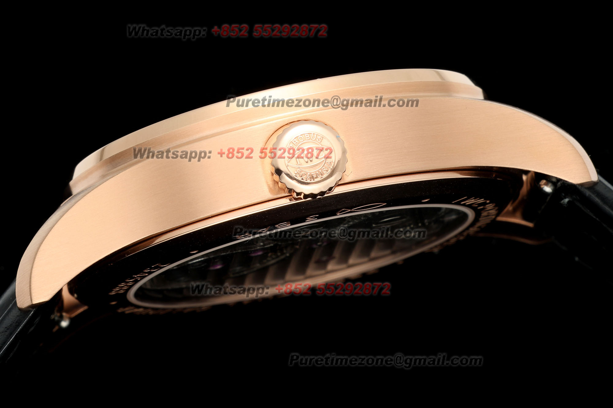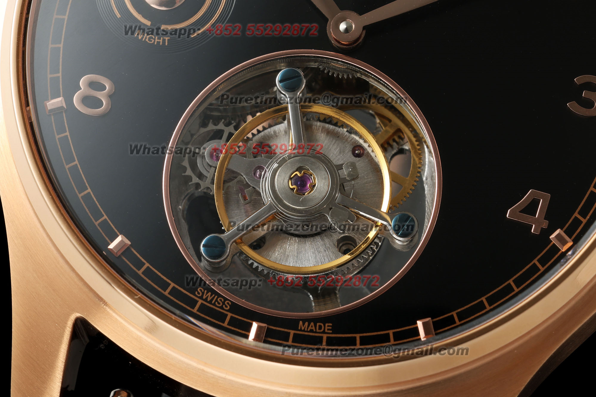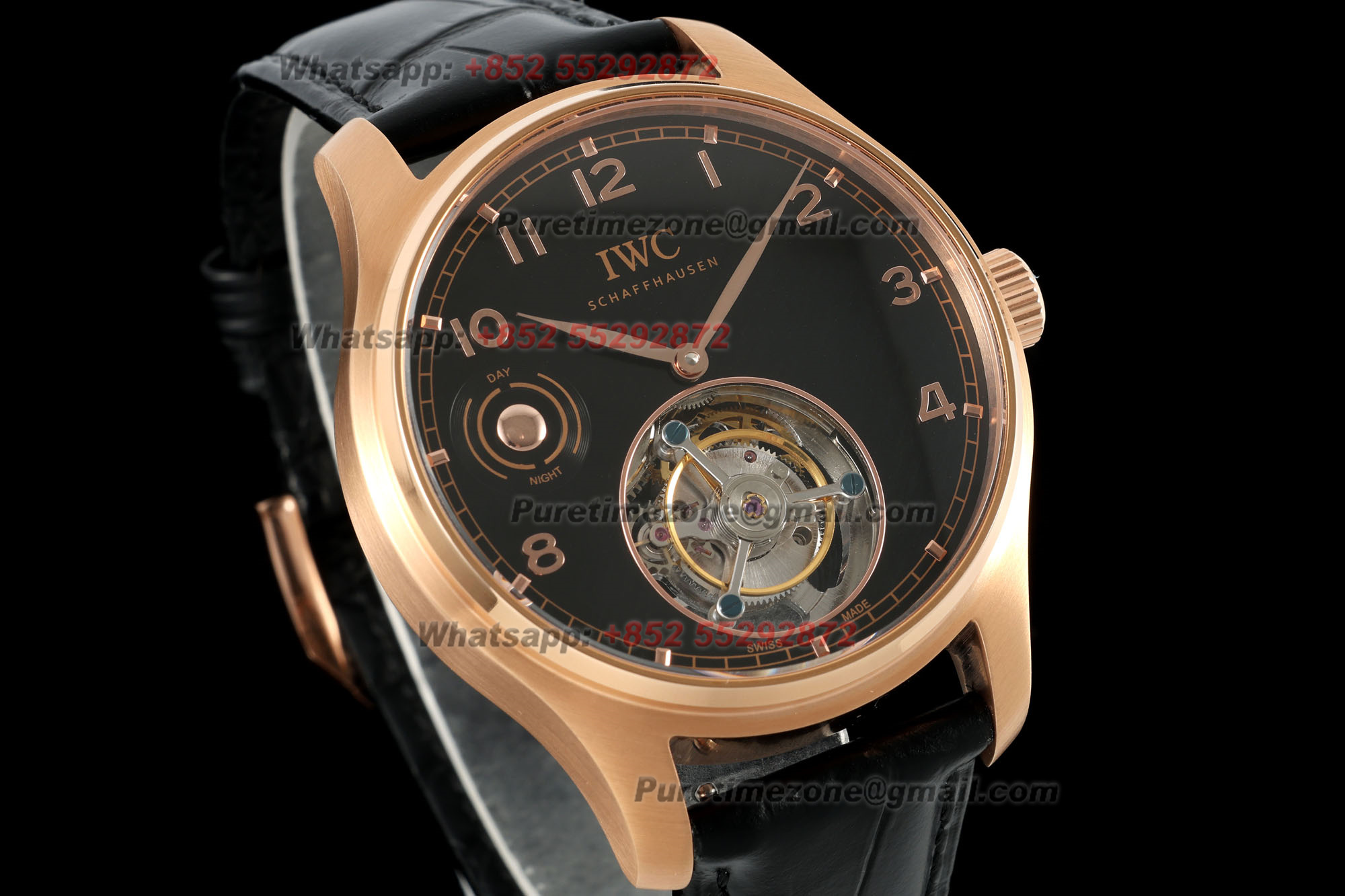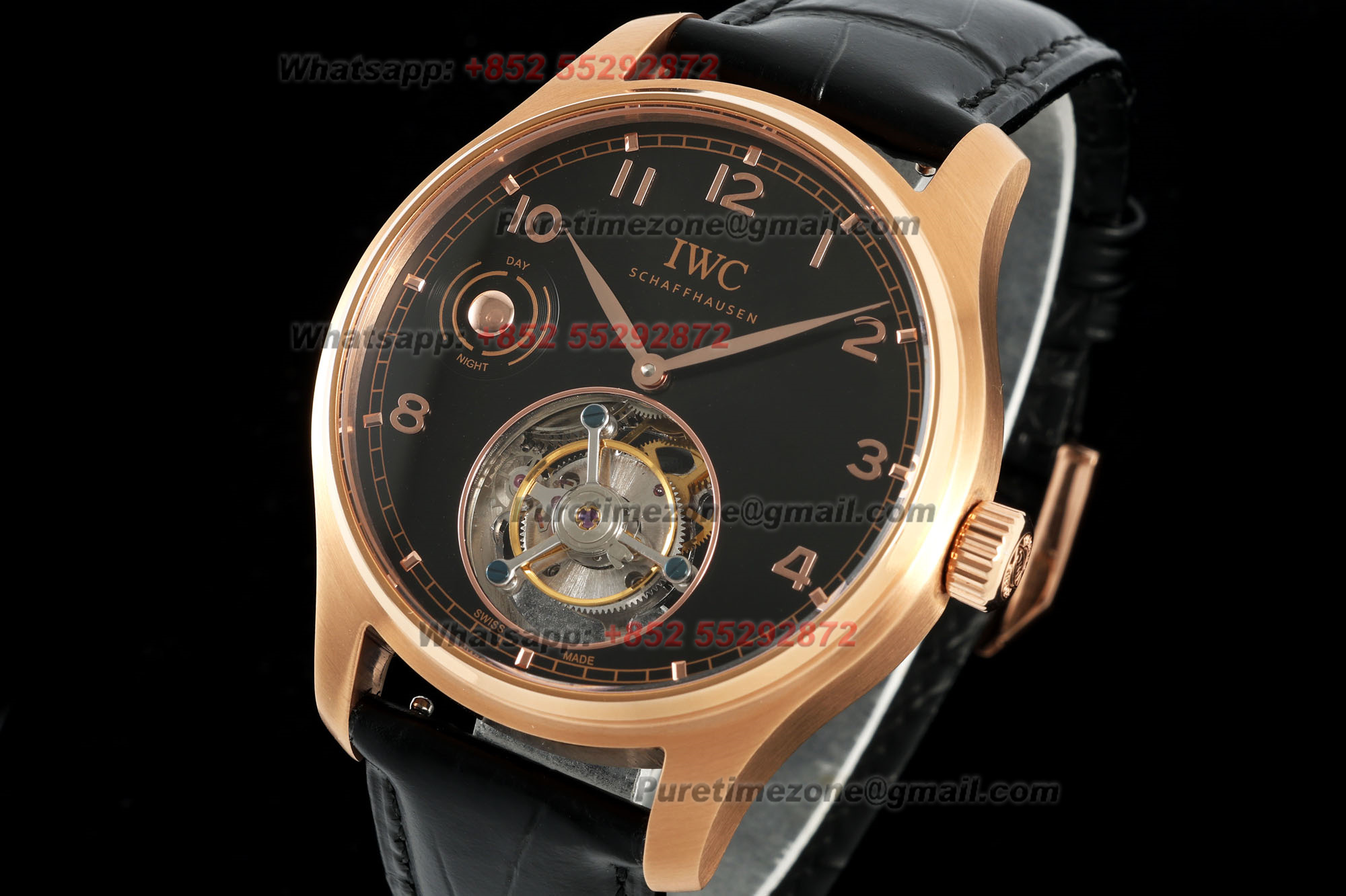 Portugieser Tourbillon Wind Mens Watch RMSF Best Edition 40mm RG Black Dial Black Leather Strap
